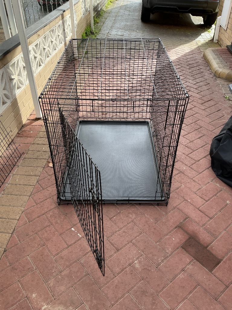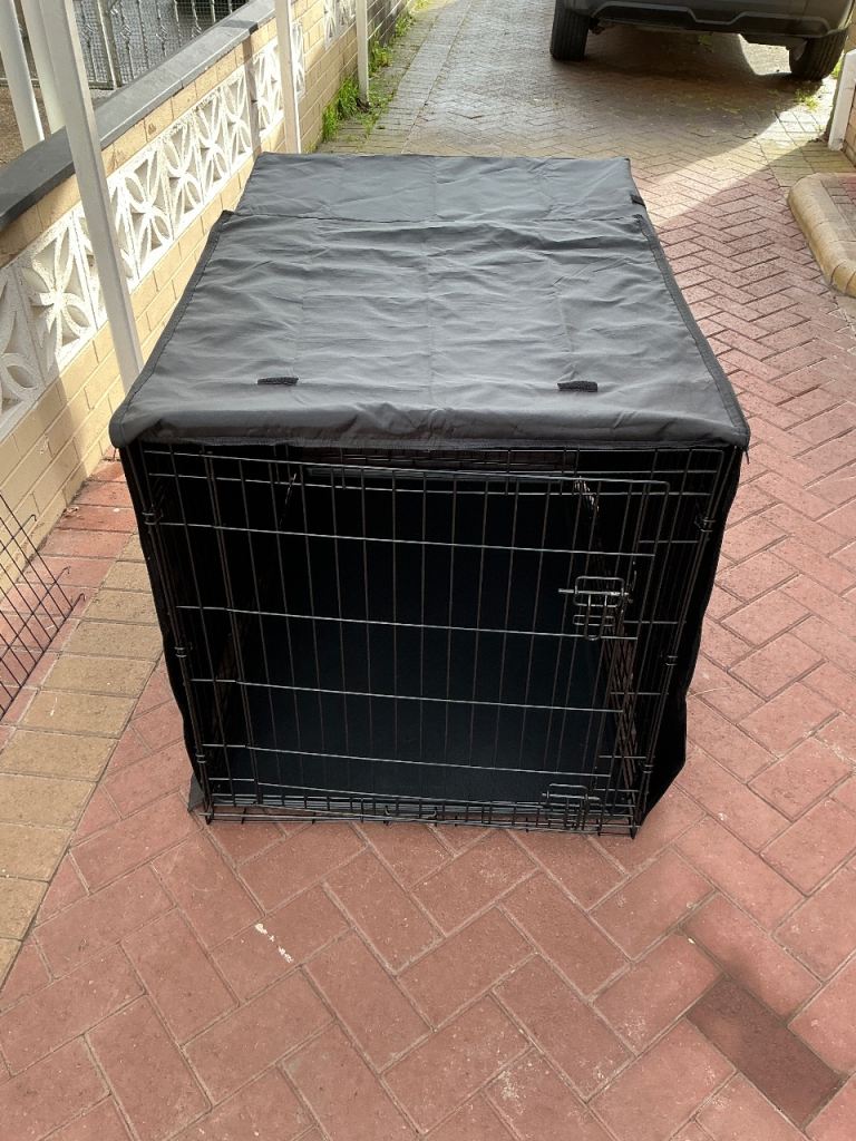 Large dog cage with cover and cage divider. L 107 cm W 71 cm H 77 cm. Less than a year old excellent condition. Buyer collects, cash only.