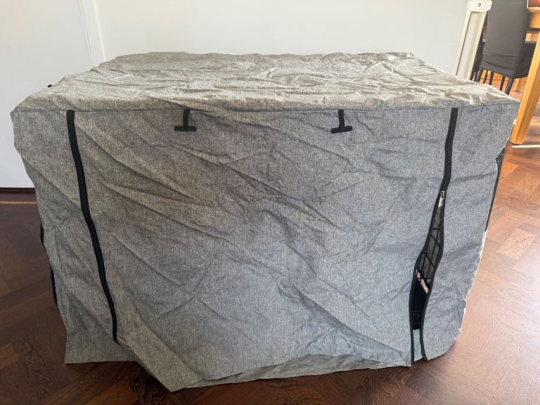 The crate has hardly been used as the dog was only visiting. It’s in excellent condition.