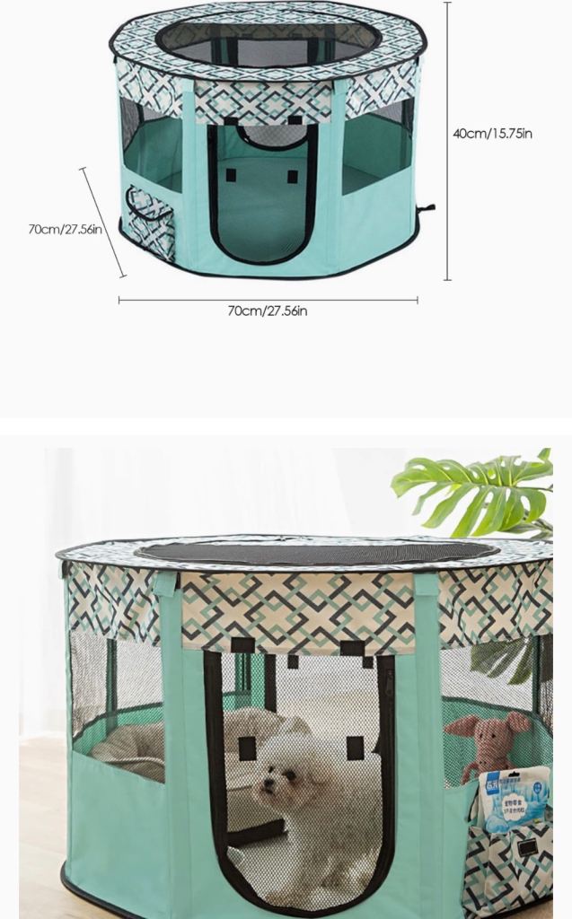 Fold up playpen for puppies cats or great as a crate when going away on holiday as would fit into a shopping bag so would take hardly any room up