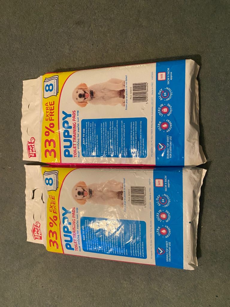 Puppy toilet training pads. Two packs x 8 pads. Size 56cm x 56cm