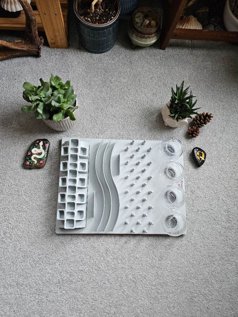The Tracks Module: This module is particularly suitable for elderly cats and cats limited by poor health. With a little skill, the treat can be simply pulled along between the wavy tracks.