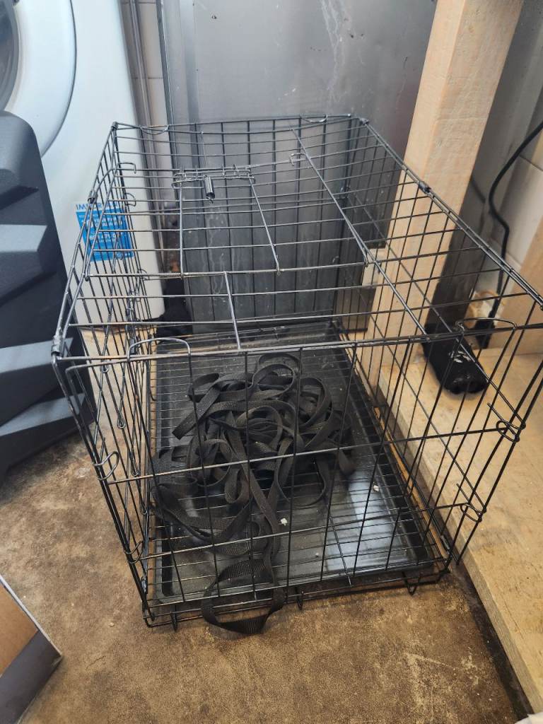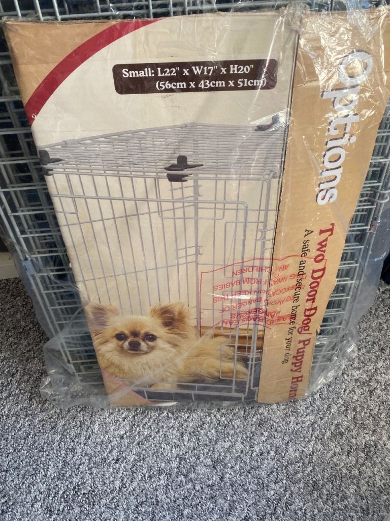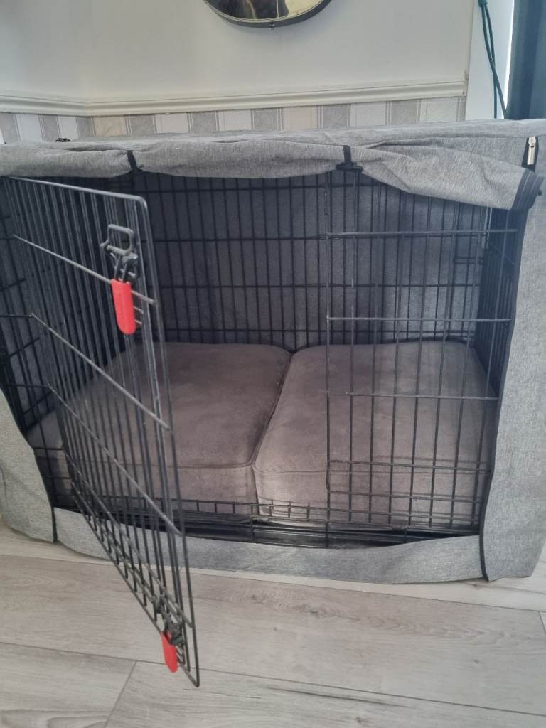 Extra large dog crate (fit my German shepherd) with cover (25 from amazon) Has two cushions in it which can be removed.