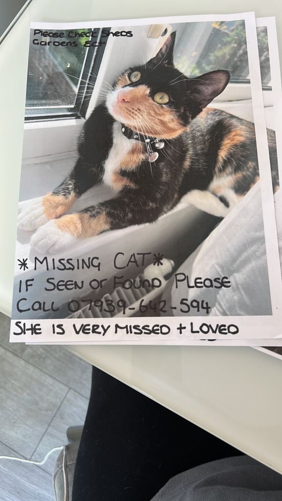 Posting for 5+ yearsSmall Cute Tortoiseshell and white. Calico. Not kitten. Missing from Halvergate