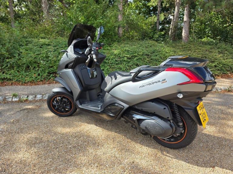 Grey, Car Licence:You can ride a Peugeot Metropolis on a standard car licence if it was obtained before January 19, 2013Here We Have for Sale the Peugeot Metrolopis 400cc Tike, gives all the benefites of Riding a Motorcycle. but with the added security of a third wheel giving you the reasaurance of better Road grip and stability.No Helmet is Required to ride. has tilt and lock suspension so you dont even need to put your feet down when you ar parked or stopped .SPECIFICATION Engine & Performance Engine Type: 4-stroke, 4-valve, single-cylinder, liquid-cooledDisplacement: 399ccPower: ~35.6 hp (~26.2 kW) at 7250 rpmTorque: ~38.1 Nm at 5750 rpmFuel System: Electronic InjectionTransmission: BeltMax Speed: ~135 km/hChassis & Braking Front Suspension: Non-adjustable hydraulic mono-damperRear Suspension: Double hydraulic dampers, adjustable on 4 positionsFront Brake: 230mm disc with ABSRear Brake: 240mm double disc with ABSBraking System: ABSDimensions & Capacities Wheelbase: 1500mmSeat Height: 780mmFuel Tank Capacity: 13.5 litersWeight (Running Order): ~265 kgFeaturesStorage: Under-seat storage for a full-face helmet, lockable glove box with USB socket Other: Bag hook, kickstand, and an electric starter, 0 owners, ABS, Centre Stand, Electric start, Low Seat height, Rear Hugger, Screen, Milton Keynes Low Mileage Used Car Dealer & Lexmoto, Sym Hyosung Keeway Dealership