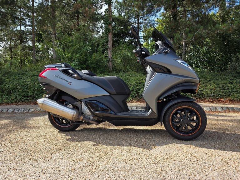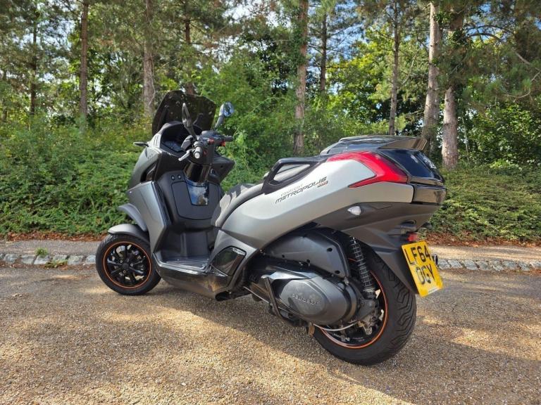 Grey, Car Licence:You can ride a Peugeot Metropolis on a standard car licence if it was obtained before January 19, 2013Here We Have for Sale the Peugeot Metrolopis 400cc Tike, gives all the benefites of Riding a Motorcycle. but with the added security of a third wheel giving you the reasaurance of better Road grip and stability.No Helmet is Required to ride. has tilt and lock suspension so you dont even need to put your feet down when you ar parked or stopped .SPECIFICATION Engine & Performance Engine Type: 4-stroke, 4-valve, single-cylinder, liquid-cooledDisplacement: 399ccPower: ~35.6 hp (~26.2 kW) at 7250 rpmTorque: ~38.1 Nm at 5750 rpmFuel System: Electronic InjectionTransmission: BeltMax Speed: ~135 km/hChassis & Braking Front Suspension: Non-adjustable hydraulic mono-damperRear Suspension: Double hydraulic dampers, adjustable on 4 positionsFront Brake: 230mm disc with ABSRear Brake: 240mm double disc with ABSBraking System: ABSDimensions & Capacities Wheelbase: 1500mmSeat Height: 780mmFuel Tank Capacity: 13.5 litersWeight (Running Order): ~265 kgFeaturesStorage: Under-seat storage for a full-face helmet, lockable glove box with USB socket Other: Bag hook, kickstand, and an electric starter, 0 owners, ABS, Centre Stand, Electric start, Low Seat height, Rear Hugger, Screen, Milton Keynes Low Mileage Used Car Dealer & Lexmoto, Sym Hyosung Keeway Dealership
