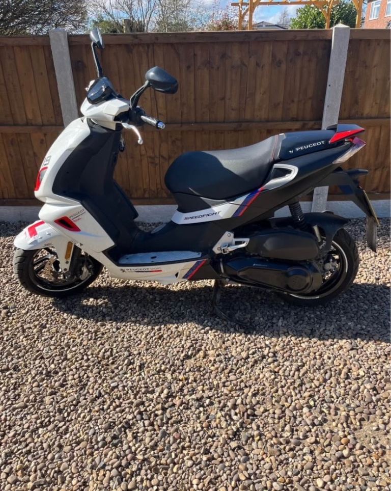 Peugeot Tweet 50 cc. New tyres, exhaust, battery, and speedo cable. Everything works as it should (not a great starter in cold weather). I bought this as a bit of a project and now it's surplus to requirements. It needs an MOT as it has sat in the garage for a while since I replaced the tyres etc. Being only 50cc it can be ridden using a standard car licence (although I believe that may not apply to everyone!). Unfortunately as it has no MOT a road test is not possible (apart from a quick ride around the garden!). Worth viewing if you're looking for a cheap run-around.