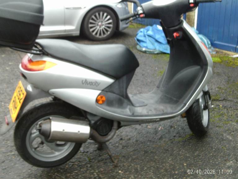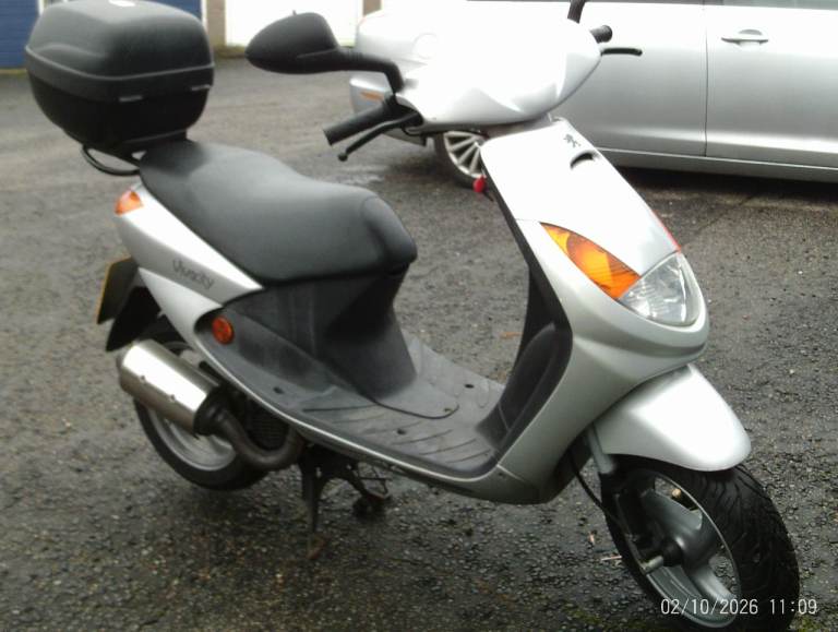 peugeot vivacity 50cc two stroke very clean moped very nippy too being a two stroke.long mot until nov new tyres not your normal crashed/thrashed/abused moped this has been well looked afterwith low owners and miles.been derestricted but no other mods have been done so keeps up with traffic approx 40-45mph.topbox will not come with it will be removed upon sale.possible local delivery once viewed.no best/last price mate questions no swaps cash sale only. please remember this is not your average rubbish moped this is a very honest well looked after example.