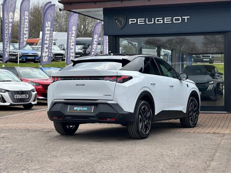 Turn heads in this stunning Okenite White Peugeot 3008 GT, where bold SUV styling meets refined French luxury.This range-topping Peugeot 3008 GT commands attention with its sleek lines, striking front grille, and unmistakable road presence. Finished in elegant Okenite White, it perfectly complements the beautifully crafted Nappa leather interior, creating a cabin that feels every bit as premium as it looks.Step inside and experience true comfort. Both driver and passenger benefit from fully electric seat adjustments, allowing you to find your perfect driving position at the touch of a button. Heated front and rear seats ensure every journey is cosy, whatever the season, while the luxurious massage function in the front seats transforms daily commutes into first-class travel.Technology is seamlessly integrated throughout. The 360° Vision camera system makes parking and manoeuvring effortless. Stay connected on the move with wireless Apple CarPlay and Android Auto, and keep your cabin clutter-free thanks to the wireless charging pad. The convenience continues with an electric tailgate, making loading and unloading simple and hands-free.Meticulously maintained, this exceptional example was last serviced on 14/11/2025 at just 4,365 miles, reflecting light use and careful ownership..Locking Wheel Nuts, Luggage Cover, Rain Sensor, Rear Wiper, Laminated Windscreen, Heated Rear Window, Deadlocking System, Multi Function Trip Computer, Electrochrome Rear View Mirror, 2 Rear Cupholders, Aluminium Pedals, Automatic Headlamp Activation, Front And Rear Curtain Airbags, Rear Parking Sensor, Dual Zone Climate Control, Front/rear Disc Brakes, Hill Start Assist, Electric Adjustable/heated/folding Door Mirrors, Rear Air Vents, 2 Cupholders In Front Centre Console, 3 Seat Rear Bench, Lane Keep Assist, LED Daytime Running Lights, Acoustic Windscreen, Front Parking Sensor, Adaptive Cruise Control With Stop And Go, PEUGEOT SOS And Assistance, Peugeot Connect SOS And Assistance, Gloss Black Finish B Pillar, LED Footwell Lights, Driver Profile Selection, LED Third Brake Light, Automatic Hazard Light Activation Upon Heavy Brake Application, Automatic Hazard Light Activation Upon Heavy Brake Application, Exterior Temperature Indicator With Ice Warning, Electric Power Steering With Reach And Rake Adjustable Steering Column, DAB Radio (Digital Audio Broadcasting), Front Optimised Safety Headrests And 3 X Rear Retractable Headrests With Height Adjustable, Electric Parking Brake, Driver And Front Passenger Side Airbags, Electronic Code Immobiliser, Dynamic Stability Control And Electronic Anti-skid System, Two Position Boot Floor, Two Position Boot Floor, Seatbelt Unfastened On The Move Audible And Visual Alert For Front And Rear Seats, 4 Grab Handles Retractable And Damped, E-call, Body Coloured Exterior Door Handles, Body Coloured Exterior Door Handles, Natural Voice Recognition, Natural Voice Recognition, ABS (Anti-lock Braking System) With EBD (Electronic Brakeforce Distribution) And EBA (Emergency Braking Assistance), Automatic Door Locking When Moving Off, Automatic Door Locking When Moving Off, Child Locking Functionality On Rear Doors, Child Locking Functionality On Rear Doors, Post Collision Safety Brake, Post Collision Safety Brake, LED Glovebox Light, LED Glovebox Light, LED Boot Light, LED Boot Light, 3x3 Point Rear Seat Belts, 3x3 Point Rear Seat Belts, Dynamic Front Seats, Dynamic Front Seats, Rear Full LED 3D Peugeot Signature Claw Effect Lights With Daylight Function, Two Bag Hooks, Two Bag Hooks, Acoustic Vehicle Alert System (AVAS), Acoustic Vehicle Alert System (AVAS), Peugeot Open And Go (keyless Entry And Push Button Start), Single Front Passenger Seat, Rear Side Wing Doors, Wireless Mirror Screen With Apple Carplay And Android Auto, Wireless Mirror Screen With Apple Car Play/android Auto, E-Toggle Compact Gear Selector, Hands Free Smart Electric Tailgate (foot Operated), Mistral Black Pillars And Headlining, 4 Tie Down Luggage Rings, Manual Gear Changes Via Steering Mounted Paddles, Arch Design Central Console With Concealed Storage, Dark Tinted Privacy Glass For Rear Door, Tailgate And Quarter Windows, Flat Blade Wipers With Magic Wash Integrated Nozzles, AM/FM Bi-tuner, Front And Rear Electric Windows With One Touch, Front Passenger Seat Detection, Advanced Emergency Braking System With Radar (AEBS3) Providing Night Detection Of Pedestrians And Cyclists, Luxury Front And Rear Carpet Mats With Iced Clay Stitching And GT Logo, Bluetooth With Two Microphones (Connect Up To 2 Phones), Speed Limit And Traffic Sign Recognition And Recommendation, Driver Foot Rest, Wireless Smartphone Charger With Status Light And Ambient Lighting, PEUGEOT I-connect Advanced HD Fully Customisable Touch Screen, Navigation With Tom Tom Live Updates And Over The Air Map Updates, Orbital Gloss Black Door Mirrors, Peugeot Customisable Virtual IToggles, Black Diamond Roof And Floating Effect Rear Spoiler Finished In Nera Black Metallic,