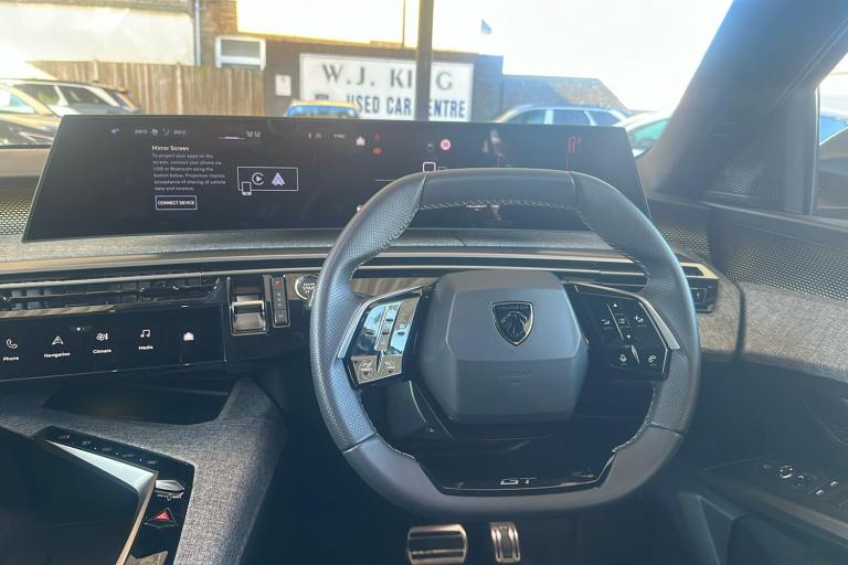 Experience a blend of style and efficiency with this used 2023 Peugeot 3008 SUV GT in striking Metallic Nera Black. Featuring a modern hybrid system paired with a smooth automatic gearbox this front wheel drive SUV delivers a combined fuel economy of 52.5mpg and offers comfortable seating for up to five. The 1.2-litre hybrid engine produces 134hp and achieves a top speed of 125mph making it an excellent choice for both urban and motorway driving. Practicality is at the heart of the 3008 with generous boot space ranging from 588 to 1663 litres and split folding rear seats to adapt to your needs. Distinctive diamond-cut 19-inch alloy wheels heated front seats advanced safety features and hands-free electric tailgate add to its appeal. With just one previous keeper this Peugeot 3008 combines stylish looks with everyday functionality for your next journey.