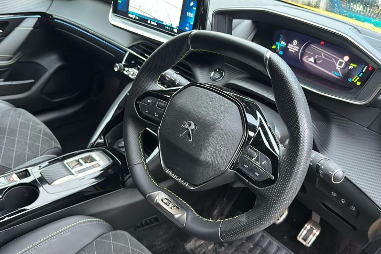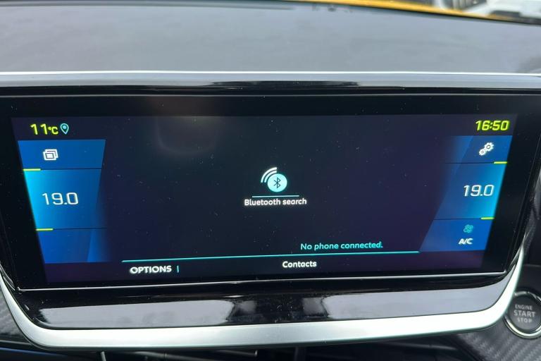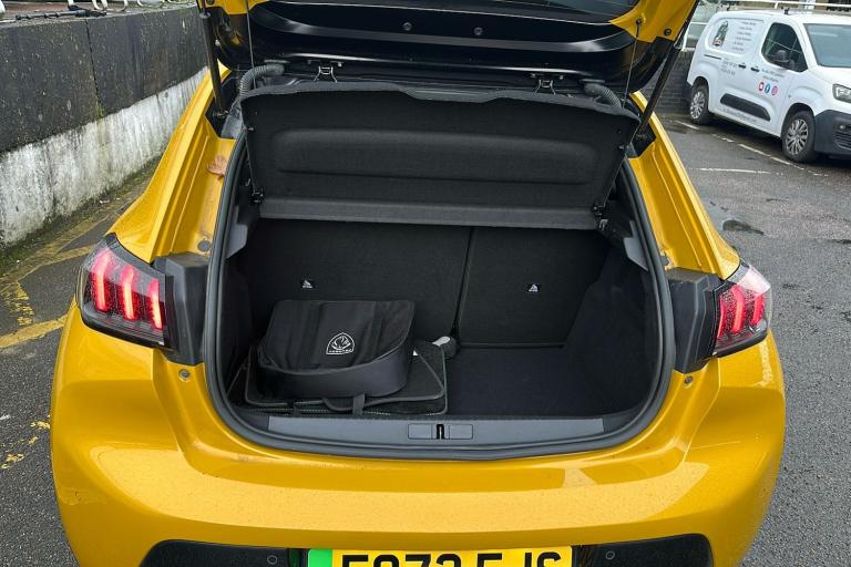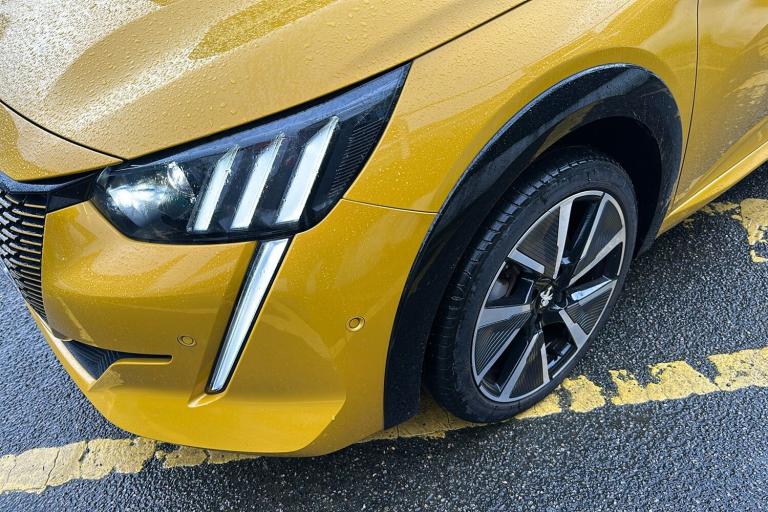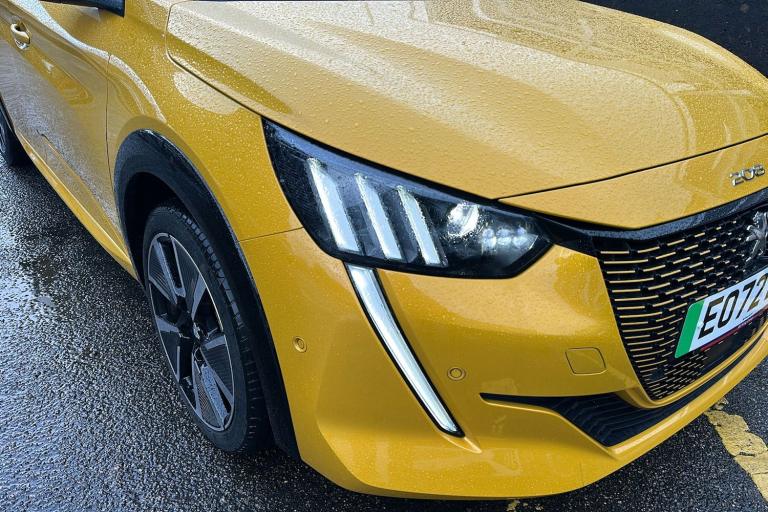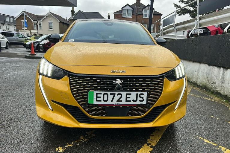 New MOT expires 21/02/2027 No advisories 12 Months Manufacturers Warranty with 12 Months RAC cover with Homestart and fully serviced. Experience electric driving with the used Peugeot E 208 GT Premium Hatchback in metallic Faro yellow. Registered in February 2023 and with just one previous keeper this practical five-door five-seat hatchback offers a refined modern look complemented by diamond cut alloy wheels and a contrasting Diamond Black roof. With a fully electric range of up to 225 miles and ULEZ compliance the E 208 is perfect for city commuting and longer journeys alike. The compact design delivers a roomy interior supported by a generous boot space of up to 1106 litres with the seats down. The 134 horsepower motor delivers effortless acceleration reaching speeds of up to 93 mph. Packed with thoughtful comfort safety and high-tech touches including adaptive cruise control blind spot monitoring a digital instrument panel and smartphone integration this E 208 blends everyday usability with a dynamic stylish presence.