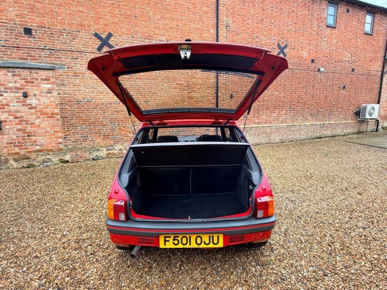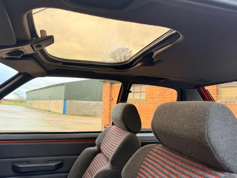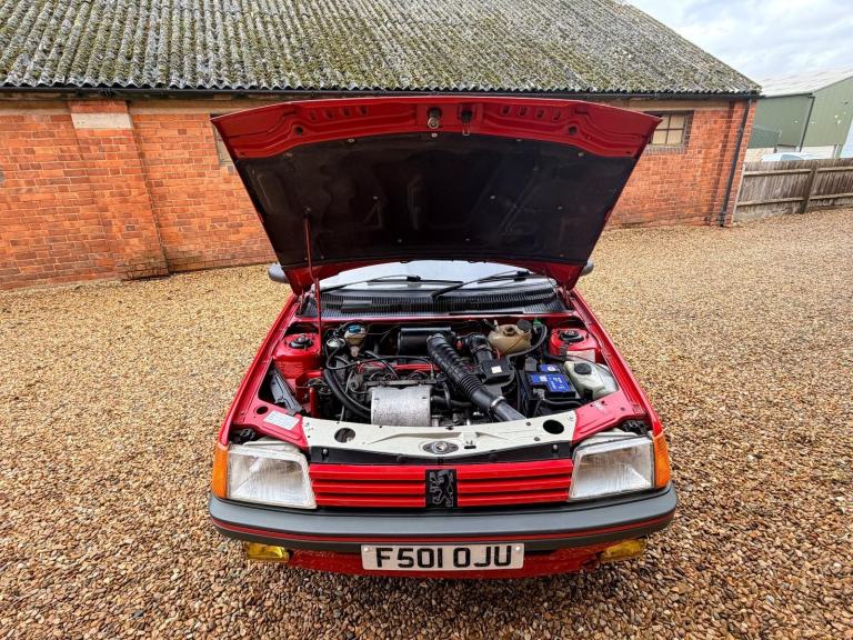 Having covered 114,000 miles from new, this car has clearly been cared for properly rather than merely preserved. Crucially, during 2025 it has benefitted from extensive expenditure focused on long-term mechanical excellence. The cylinder head has been skimmed and rebuilt accompanied by a new timing belt and full service items. The rear beam has been replaced, a vital and often overlooked job on these cars ensuring correct geometry and longevity. The suspension has been rebuilt using correct Bilstein dampers, preserving factory character while restoring chassis precision. New brake discs have been fitted all round, along with new engine mounts, a new exhaust system and B M Baker gear linkages for a more defined shift action. The fuel tank has been removed and the underside professionally sealed. The wheels have been refurbished to a high standard. A new windscreen has been sourced through the Peugeot Vintage Centre in France to maintain originality. Detail refinements include new red exterior trim, new bumper brackets and a fresh gear knob. The car retains its original factory radio cassette although a more modern unit is currently fitted and it still retains its supplying dealer rear number plate, original book packs and factory sunroof, all increasingly important markers of authenticity. Final set-up has been completed by a respected vintage Peugeot specialist and master technician.