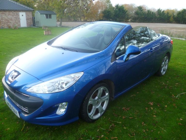 Finished in Ipanema Blue metallic ( to remind you of the beach in Brazil ) with black full leather- this 308 CC hard top convertible has heated seats with memory on the drivers seat and air scarf on both to keep you warm on cold days -- It is a 4 seater convertible , The alloy wheels are in good order-- Folding door mirrors on locking the car along with a dipping nearside mirror when reversing --Excellent performance from the 2.0 Turbo diesel producing 140 bhp delivered through a very smooth 6 speed manual gearbox -- Digital Climate control for the heating/cooling system