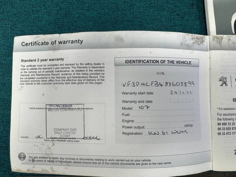 Here we have a cheap and cheeful little 107 Urban, The car was previosly sold through copart due to minor dents and scratches and really had no damage to speak of though is recorded as cat n.Full photos and evidence to confirm this (see photos) Drives very well and is an ideal first car or shopping car, 1 or 2 marks but generally respectable and will have a fresh service and a new MOT. RETAIL ON THIS CAR IS £2350 SO GRAB A BARGAIN AT £1496 WITH A NEW MOT.Electric windows, Low insurance group, £20 a year road tax and combined MPG of 52.1, Service history with 7 recorded services also. All our vehicles over £3000 come with our 5 Star package! * Full service with new oil, oil filter, air filter and pollen filter, and brakes, lights and levels checked. * Minimum of 9 Months MOT or a will have a Brand new one! * 6 Month comprehensive parts and labour warranty F.O.C.! * Full valet prior to collection! * HPI Clear with PDF Report (unless clearly stated otherwise) Extended warranties available at competitive rates. Give us a call to make your next purchase a special purchase. FCA Regulated, Finance available Subject to status! 5 Day Driveaway insurance available at small cost (circa £30) to get you on the road sooner than you think. Secure any car with a small deposit. Airport/Train station collection service All our Part X to clear cars (under £3000) come with our Budget 4 star package! * Minimum of 5 Months MOT or a will have a Brand new one! * Lights and levels checked! * HPI Clear with PDF Report (unless stated) * 3 months Major mechanical parts warranty.CAT N BUT NO DAMAGE JUST FEW DINTS , ELECTRIC WINDOWS NEW WHEEL TRIMS, WILL HAVE FRESH SERVICE AND NEW MOT, £20 ROAD TAX 55 MPG COMBINED, 3 M PARTS ONLY WARRANTY, 12V Power Socket, 14in Steel Wheels - Cordouan, 4-Speed Heater Fan, ABS - Anti Lock Braking System, Airbags - Side, CSC - Cornering Stability Control, Child Safety Door Locking, Cup Holders in Centre Console - 2 Front and 1 Rear, Door Handles - Body Coloured, Door Mirrors - Body Coloured, EBFD - Electronic Brake Force Distribution, Electric Front Windows, Electrically Assisted Power Steering, Front and Rear Aprons - Body-Coloured, Full Size Spare Wheel, Head Restraints - Front Integrated, Head Restraints - Rear Height Adjustment x2, Headlights - Remote Adjustment, Heated Rear Window, High Level Third Brake Light, ISOFIX Location Points - Rear, Lights On Warning, Luggage Compartment - Carpet, Luggage Compartment - Rigid Removable Cover, Power Assisted Steering, Radio-CD Player-MP3, Remote Control Central Locking, SMART Driver Front Airbag, SMART Passenger Front Airbag Includes Deactivation Switch, Seats - 50-50 Split Folding Rear, Side Impact Absorbent Door Protection, Side Rubbing Strips - Black, Speakers x2, Steering Wheel - Height Adjustable, Sunvisor - Front with Vanity Mirrors, Tinted Windows - Rear Single Piece Tailgate with Push Button Release, Trip Computer, Twin Circular Air Vents, Windows - Pop-Out Opening Rear Side