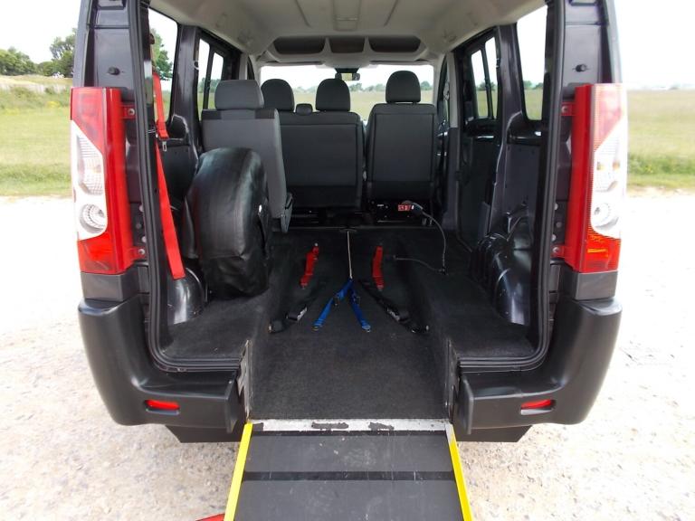 FITTED WITH A LIGHWEIGHT FOLD DOWN RAMP THE VEHICLE ALSO HAS FOUR WHEELCHAIR SECURING RESTRAINTS.