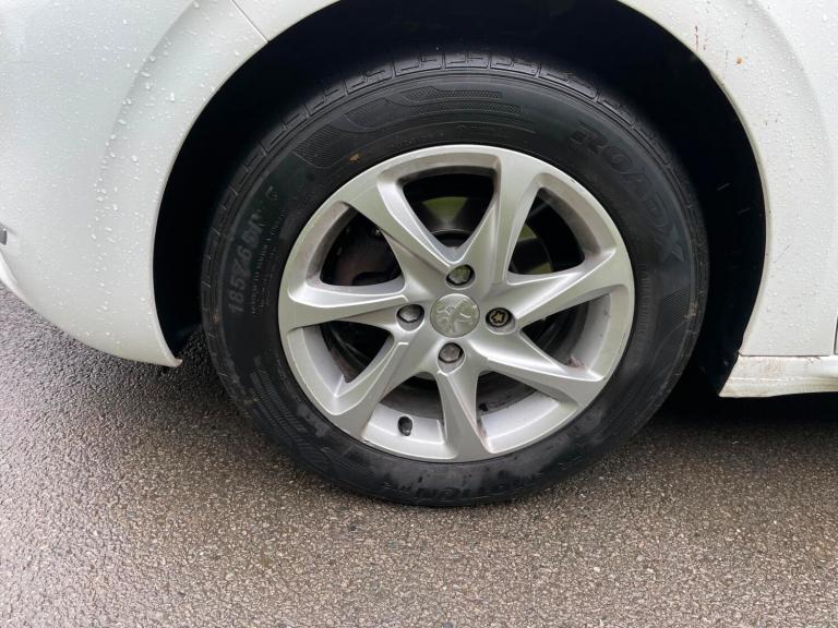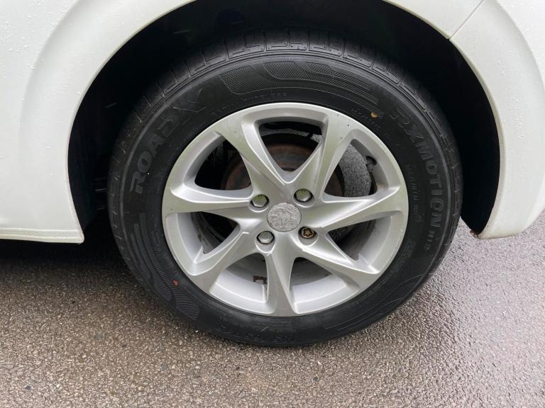 3 rear 3 point seatbelts, Child safety lock, Driver and passenger airbags, Front and rear curtain airbags, Front side airbags, Passenger airbag deactivation system, Seatbelt warning lamp and buzzer, Immobiliser, Remote central locking + deadlocks, Anti-lock Brake System / Electronic Brakeforce Distribution / Emergency brake assist, Electronic Stability Programme, Traction control, Body coloured door mirrors, Electric operated/heated door mirrors, Intermittent rear wash/wipe, One touch electric front windows, Body colour door handles, Body coloured bumpers, Honeycomb radiator grille, Solid paint, Automatic activation of hazard warning lights, Chrome front fog light surround, Daytime running lights, Follow me home headlights, Front fog lights, 1/3 to 2/3 split folding rear seats, 3 rear head restraints, Driver seat height adjustment, Height adjustable front headrests, ISOFIX on outer rear seats, Driver/passenger sunvisors and vanity mirrors, Auxilliary 12V power socket, Cloth upholstery, Reach + rake adjustable steering column, Refrigerated glovebox, Manual air conditioning, Cruise control + speed limiter, Electronic power assisted steering, External temperature gauge, Service interval indicator, Touch screen display, Trip computer, 4 speakers + 2 tweeters, Auxiliary input socket, Peugeot connect with USB and bluetooth, Steering wheel mounted remote controls, 15" Azote alloy wheels, Full size spare wheel