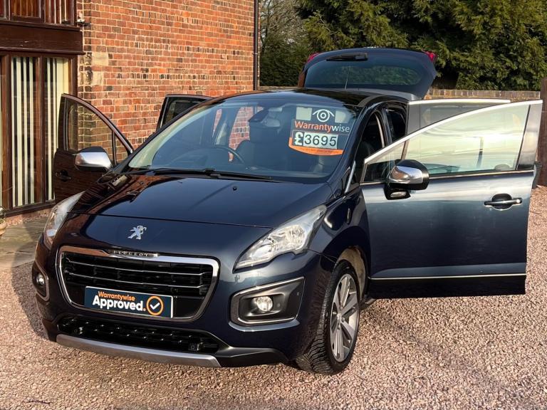 * 2014 (OV64 DYD) PEUGEOT 3008 2.0 HDI ALLURE MPV * ECOMICAL & POWERFUL 2.0 DIESEL * 6 SPEED MANUAL GEARBOX * 5 PEUGEOT MAIN DEALER SERVICES & 1 INDEPENDENT GARAGE SERVICE * SERVICE BOOK * ALLOY WHEELS * 2 X KEYS * IT'S IN A LOVELY COLOUR METALLIC ""BLUE"" PAINTWORK * FRONT & REAR PARKING SENSORS * REAR PARKING CAMERA * DETACHBLE TOWBAR * AUTOMATIC LIGHTS * PANORAMIC GLASS ROOF WITH ELECTRIC CLOSURE BLIND * LUXURY HALF LEATHER INTERIOR * AIRCONDITIONING/CLIMATE CONTROL * BLUETOOTH * DAB /FM/AM RADIO WITH MEDIA CONNECTIVITY * SATNAV * SPEED HEADER DISPLAY * GREAT SIZED BOOT WITH SPLIT OPENING TAIL GATE & FALSE LEVEL LOADING BOARD * IT DRIVES GREAT & VERY ECONOMICAL * 3 MONTH WARRANTY WISE GOLD COVER INCLUDED IN THIS SALE ( THIS CAN BE EXTENDED AT A EXTRA COST) *** UNFORTUNATLY THE VEHICHLE HAS HAD A INSURANCE CLAIM AGAINST IT IN THE PAST (SO CATERGORY N) BUT PRICED ACCORDINGLY ***************** REASONS TO BUY FROM US :We provide a personal and friendly service with a stress free approach.We believe in combining both quality and affordability in our cars.We are genuine and honest and have repeat business.All cars Hpi clear (unless stated).Save £100's if not £1000's off forecourt prices.We are an independent small family run business, priding ourselves on a professional, helpful and honest outlook.I have been in the industry for over 30 years and for years sold cars for a profession.We now get repeat business and have built a very good rapport with previous clients.All cars are test driven for around 50 miles or more and any mechanical issues are rectified.All cars sold with no known issues unless stated in the advert