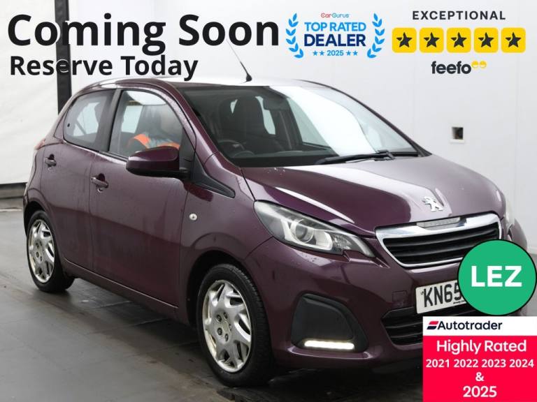 Lovely Peugeot 108 In Purple - Ideal First Car Due Low Insurance Group (6) Low Running & Maintenance Costs With £20 Road Tax And Up To 78 MPG - LEZ Compliant - Car Has Been Well Maintained And Cared For - Great Features On This Model With The Likes Of 7" Touch Multifunction Touch Screen - Bluetooth - USB Ports - DAB Radio - Air Conditioning - Hill Assist - LED Daytime Running Lights - Thatcham Approved Category 2 Immobiliser And Much More! - Comes Fully Serviced And With Long MOT To 10/26 - 1 Months Parts & Labour Warranty Included -Call & Secure Today With A Low Deposit Of £95 ! Fully Comprehensive Parts & Labour Warranty Included On All Vehicles ! 12 Months AA Breakdown Included With Every Vehicle ! Low Rate Finance Available, Ask For Details ! We Offer Various Extended Warranty Options From 3 Months To 1 Year ! We Welcome Any Inspection On Our Vehicles ! AA Approved Dealership ! Part Exchanges Welcome ! We Take Care Of The Whole Process ! Fair Prices Paid ! All Of Our Vehicle Are Prepared With The Highest Standards and a 99 Point Inspection ! Family Run Business ! Buy With Confidence ! Open 6 Days A Week ! Closed On Sundays ! Please Call Ahead To Check Availability ! PLEASE NOTE - VEHICLES CANT BE RESERVED WITHOUT A DEPOSIT/RESERVATION.F/S/H - LEZ - £20 Tax - BTooth - 2 Keys, Very Low Insurance Group 6 , 7" Multifunction Colour Touchscreen , Fully Serviced With Long MOT To 10/26, Low Running Costs - Up To 78 MPG -, 12V Power Socket, 15in Steel Wheels, 3.5mm Jack, 7in Multifunction Colour Touchscreen, ABS - Anti Lock Braking System, Air Conditioning - Manual, Airbags - Curtain, Airbags - Curtain Rear, Airbags - Front Side, Airbags - Passenger Deactivation Switch, Bluetooth Telephone Facility, Brecola Wheel Trims, Child Safety Door Locking, DAB Digital Radio, Door Handles - Body Coloured, Door Mirrors - Body Coloured, Door Mirrors - Manually Operated, Driver Seat Height Adjustment, Drivers Airbag, EBFD - Electronic Brake Force Distribution, ESP - Electronic Stability Programme, Electric Front Windows, Electrically Assisted Power Steering, Front Passenger Airbags, Head Restraints - Rear x2, Hill Assist, ISOFIX Location Points - Rear x2, Inserts - Dash and Centre Console - Black-Grey, LED Daytime Running Lights, Mirror Screen, Pollen Filter, Rear Wash Wipe, Remote Control Central Locking, Seats - 50-50 Split Folding Rear, Speakers x4, Speed Limiter, Steering Wheel - Height Adjustable, Steering Wheel - Multifunction, Thatcham Approved Cat 2 Immobiliser, Three Point Rear Seatbelts, Trip Computer, Tyre Pressure Sensors, Tyre Repair Kit, USB Input, Unfastened Seat Belt Warning - Front, Windows - Pop-Out Opening Rear Side