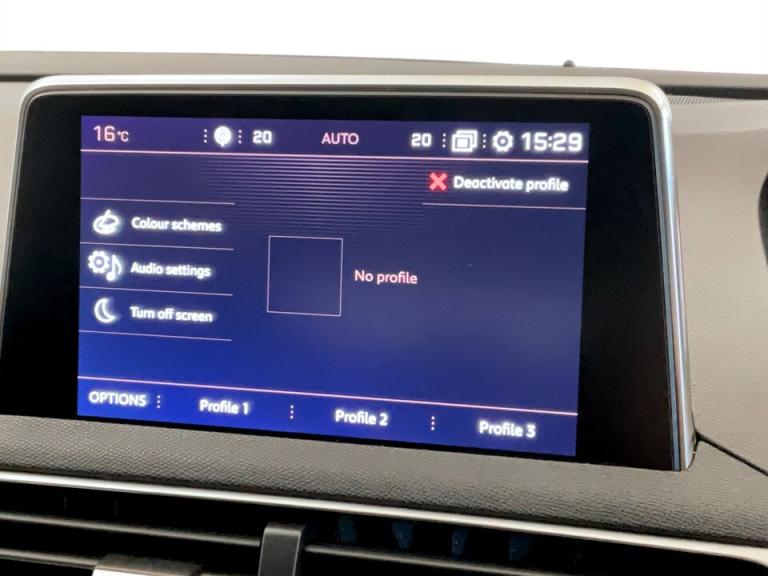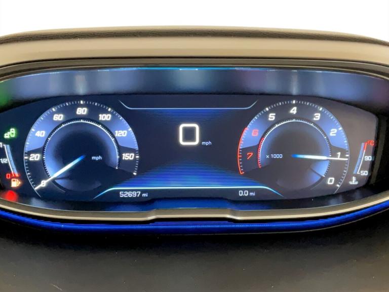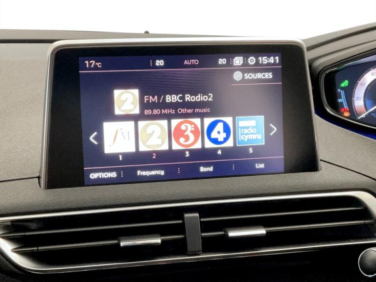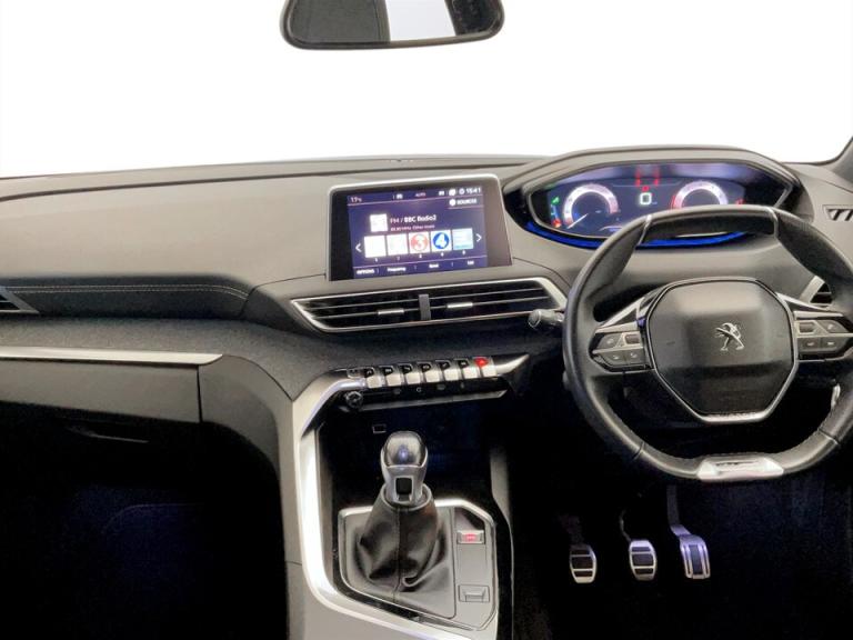 ..3D connected navigation + voice control + Peugeot connect SOS and assistance, Blind spot monitoring, Digital clock, Exterior temperature gauge, Lane departure warning system, Lane keep assist, Mirror screen with mirror link and car play, Multi function trip computer, Peugeot i-cockpit with amplify configurable interior ambiences, headup display with distance alert, touch screen, Programmable cruise control and speed limiter, Rear parking aid, Smartphone cradle, Speed sensitive power steering, DAB Digital radio, Peugeot connect with USB and bluetooth, Radio/MP3 player, Steering column mounted multifunction controls, Automatic activation of hazard warning lights, Automatic headlamp levelling, Black diamond roof, Black door mirrors, Body colour door handles, Body colour rear spoiler, Body coloured bumpers, Chrome bumper inserts, Chrome front fog light surround, Chrome radiator grille and surround, Chrome side window trim, Dark tinted rear windows, Electric folding door mirrors with courtesy approach lighting, Electric operated/heated door mirrors, Heated rear windscreen, LED daytime running lights, LED headlights with LED front fog light and static cornering light, LED rear lights, One touch electric front/rear windows, Peugeot smart beam assist, Rear wiper, Sports front bumper, Twin exhaust tailpipe, 1/3 to 2/3 split folding rear seats, 3 x 12V power sockets, 4 Lashing eyes in boot, Blue ambient lighting, Centre console cupholder, Centre front armrest with illuminated cool compartment, Cupholders - 2 in rear centre armrest, Dual zone automatic climate control, Fold flat front passenger seat with picnic table, Front headrests, Front reading lights, Front seat back map pockets, Gear shift indicator, Grab handles, Height adjustable headrests, Height adjustable passenger seat, Height/reach adjust steering wheel, Illuminated glovebox, Illuminated vanity mirrors, Instrument panel light dimmer, ISOFIX on front passenger and rear outer seats, LED interior illumination, Mistral floor mats, Mistral full grain perforated leather steering wheel with aikinite stitch, Rear centre armrest/ski flap, Rear coat hook, Rear headrests, Rear passenger footwell storage, Rear reading lights, Reclining front seats, Roof lining - Tramontane black, Satin chrome interior door handles, Visibility pack - 3008, 3 point front seat belts, 3 point seatbelts on all rear seats, ABS + EBD + EBA, Auto city emergency braking, Driver SMART airbag, Electronic parking brake, ESP with ASR, Front
