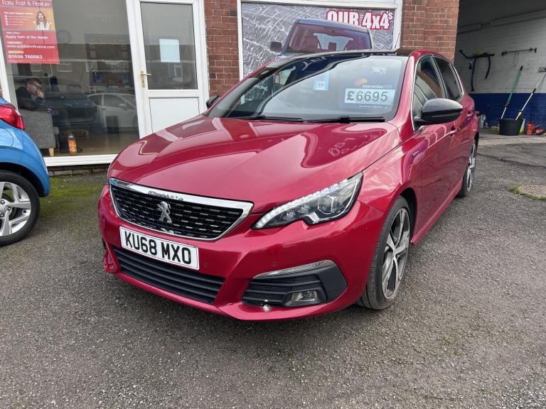 Peugeot 308 1.5 BlueHDi GT Line finished in Red (Manual), 86984 miles, only 2 previous owners. This car comes with a Full Service History. Only £6,695 Mirror Screen Peugeot Connect SOS and Assistance Peugeot i-Cockpit - 9.7in Capacitive Touchscreen Roof Mounted Antenna USB Socket 12V Power Socket 3D Connected Navigation 6-Speaker Radio - MP3 Compatible Bluetooth Telephone Facility DAB Digital Radio Front and Rear Parking Sensors Gear Shift Indicator Multifunction Trip Computer Peugeot i-Cockpit - Head-Up Instrument Panel Programmable Cruise Control and Speed Limiter Tyre Pressure Sensors Visio Park 1 - 180 Degree Colour Reversing Camera Voice Recognition - Radio-Navigation-Telephony Features Exterior Temperature Indicator with Ice Warning GT Line Emblems - Front Wings and Tailgate Heated Rear Windscreen LED Sequential Scrolling Front Indicators One-Touch Electric Front and Rear Windows with Pinch Protection Power Folding Door Mirrors - Includes Courtesy Approach Lights Radiator Grille - Chequered with Chrome Edge Trim and Red Peugeot Lettering Rear Number Plate Lights x2 Side Indicator Lights Integrated Into Door Mirrors Side Window Trim - Chrome Sports Front Bumper Design Sports Side Skirts Steel Space Saver Spare Wheel Twin Exhaust Effect Trim Visibility Pack 18in Alloy Wheels - Diamant Two Tone Finish Diamond Cut Aluminium Door Sill Finishers Cielo Panoramic Glass Roof with Electric Blind Dark Tinted Rear Side and Tailgate Windows Door Mirror Shells - Nera Black Exterior Door Handles - Body-Colour Full LED Headlights Headlights Left On Audible Warning LED Daytime Running Lights Built into the Headlight Unit Rear LED Peugeot Signature Claw Effect Lights - With Daylight Function Self Levelling Headlights Front Fog Lights - LED Front Windscreen Wipers with Multi-Speed Setting Fuel Filler Cap with Dedicated AdBlue Inlet Gear Lever in Satin Chrome Grab Handles x4 - Retractable - Damped Illuminated Vanity Mirrors Interior Door Handles - Satin Chrome Map Pockets on Front Seat Backs Mistral Floor Mats with Red Contrast Stitching Mistral Full-Grain Leather Steering Wheel with Red Stitch Detail Peugeot i-Cockpit Peugeot i-Cockpit - Compact Multi-Function Steering Wheel Rear Central Armrest with Ski Flap and Two Cup-Holders Rear Coat Hooks x2 Roof Lining - Tramontane Black Seating - Driver Seat Lumbar Adjustment Seating - Driver and Front Passenger Seat Height Adjustment Seating - Driver and Front Passenger Seat Manual Adjustment - Longitudinal and Back Rest Angle Seating - Front Passenger Seat Lumbar Adjustment Seating - Sports Style Front Seats with Elongated Cushion Bases and Increased Side Support 1-3 - 2-3 Folding Rear Seat Aluminium Style Pedals and Door Sills Automatic Dual Zone Climate Control Central Front Armrest with Height and Longitudinal Adjustment Dashboard Trim - Satin Chrome Door Armrests and Facia Panels Trimmed in Mistral Leather Effect Trim with Red Stitch Detail Fixing Rings - x4 in Load Area Front Armrest and Gear Lever Gaiter with Red Contrast Stitching Front Central Console with Cup-Holder Front Interior Light with Reading Spotlights x2 and Rear Interior Light with Timer Front Optimised Safety Headrests and Rear Retractable Headrests - x3 - Height-Adjustable Electric Power Steering with Reach and Rake Adjustable Steering Column Front Three-Point Retractable Seatbelts with Force Limiters ISOFIX Child Seat Fittings -x2- in the Outer Rear Seats Rear Three-Point Retractable Seatbelts x3 with Force Limiters in the Outer Rear Seats Rear Windscreen Wiper Triggered Automatically in Reverse Gear Remote Central Locking - Two Remotes Seatbelt Unfastened Warning Display Seatbelt Unfastened on the Move Audible and Visual Alert for Front and Rear Seats Seatbelt not Fastened Audible and Visual Alert for Front Seats Airbags - Adaptive Driver and Front Passenger Airbags - Driver and Front Passenger Side Airbags - Front and Rear Curtain Alarm - Thatcham Category 1 Anti-Lock Braking - ABS - Electronic Brake Force Distribution - EBFD - Emergency Braking Assistance - EBA Automatic Door Locking When Moving Off Automatic Hazard Light Activation Upon Heavy Brake Application Child Locking Functionality on Rear Doors Deadlocking ESP - Electronic Stability Programme Electric Parking Brake includes Hill Assist Electronic Code Immobiliser