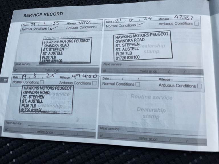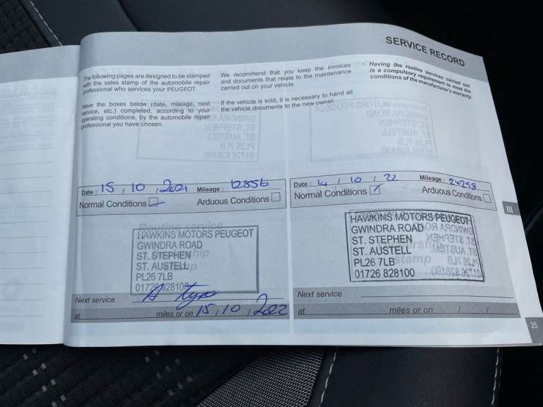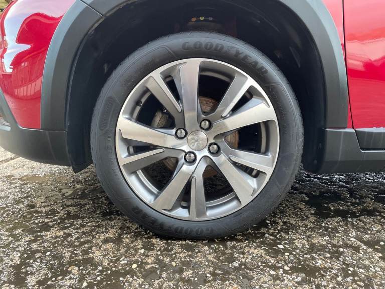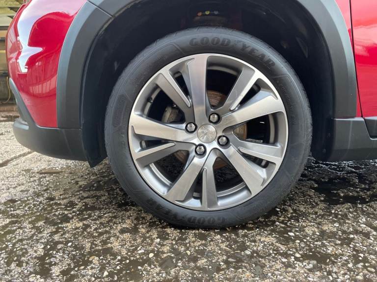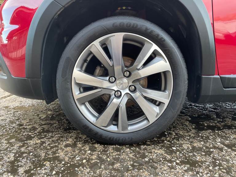 ..Apple car play/Android Auto, Aviation style handbrake, Bluetooth system, Cruise control + speed limiter, Electrically assisted power steering, External temperature gauge, Mirror link, Multifunction 7'' touchscreen with steering wheel mounted control, Service interval indicator, Trip computer, 2 front and 2 rear speakers + 2 tweeters, DAB Digital radio, USB interface, Automatic activation of hazard warning lights, Body colour bumpers, Bright chrome fog lamps surround, Bright chrome radiator grille with embossed pendant design and bright chrome surround, Colour coded door handles, Colour coded door mirrors, Cornering front fog lights, Electric front/rear windows with one touch/auto up/down, Electrically operated heated door mirrors with electric folding operation, Follow me home headlights, Front and rear scuff plates, LED daytime running lights, LED track - Laser cut headlining with ambient backlighting, Rear fog lights, Rear LED Peugeot signature 'Claw Effect' lights, Rear sports spoiler, Rear wash/wipe, Roof bars, Tinted rear and side windows, Wheel arch extensions, 1/3 to 2/3 rear bench seats with one touch fold, 3 point rear seat isofix location mount X 2, 3 rear head restraints, Auxilliary 12V power socket, Driver seat height adjust, Driver/passenger sunvisors, Dual zone automatic air conditioning, Front head restraints, Gear shift indicator, Height/reach adjust steering wheel, Leather and chrome gear knob, Leather steering wheel, Vanity mirrors, Visibility pack - 2008, 3 rear 3 point seatbelts, ABS/EBFD/EBA, Child safety lock, Driver and passenger airbags with passenger airbag deactivation switch, ESP with Hill Assist, Front and rear curtain airbags, Front side airbags, Grip control, Seatbelt warning lamp and buzzer, Tyre pressure sensor, Alarm, Deadlocks, Remote central locking, Thatcham Cat 2 engine immobiliser, LED blue instrument dial surround, 17'' Eridan anthra alloy wheel, Space saver spare wheel