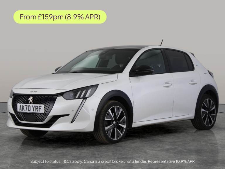 Peugeot E-208 50kWh GT Auto / Electric / 136 PS / 25,879 Miles Overview 2020 Peugeot E-208 GT finished in black with diamond black roof, powered by the 50kWh electric motor producing 136 PS and paired with an automatic transmission. A well-equipped electric hatchback offering strong performance, modern styling, and advanced driver assistance, with zero-emissions driving. The GT specification adds sporty design details, premium interior finishes, and a high level of technology including adaptive cruise control, 3D digital cockpit, and full LED lighting. FEATURES GT Specification with Diamond Black Roof 50kWh Electric Powertrain (136 PS) Peugeot 3D i-Cockpit Digital Display 10'' Touchscreen Navigation with TomTom Live Adaptive Cruise Control with Stop & Go Visio Park 180° Reversing Camera Front & Rear Parking Sensors Heated Front Seats Full LED Headlights with Smartbeam Apple CarPlay & Android Auto Blind Spot Monitoring Lane Keep Assist & Road Sign Recognition Smartphone Wireless Charging Ambient Interior Lighting Keyless Entry & Start 17'' Diamond-Cut Alloy Wheels Why Buy From Liberty Green? Every Liberty Green car is hand-selected, HPI clear, and prepared to a high standard for total peace of mind. Each vehicle undergoes a detailed inspection and comes with a minimum three-month warranty, extendable for up to three years. We also offer nationwide delivery, competitive finance, and a straightforward, customer-focused buying experience.