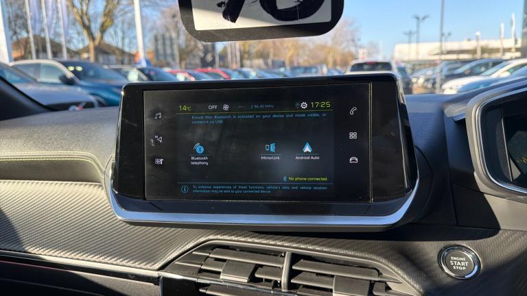 12V Power Socket6-Speaker Radio - MP3 CompatibleBluetooth Telephone FacilityDAB Digital RadioFront USB Socket x2 including x1 USB-CMirror Screen - Apple CarPlay and Android AutoPeugeot Connect SOS and AssistancePEUGEOT i-Cockpit 7in Capacitive Colour TouchscreenRear USB Socket x2Smartphone Charging PlateSmartphone Docking StationDistance Alert SystemDriver Attention AlertExterior Temperature Indicator with Ice WarningFront and Rear Parking SensorsMultifunction Trip ComputerPEUGEOT 3D i-Cockpit - Configurable 3D Head-Up Instrument PanelProgrammable Cruise Control and Speed LimiterRoad Sign Recognition and RecommendationTyre Pressure SensorsVisio Park 1 - 180 Degree Colour Reversing CameraVoice Recognition - Radio-Navigation-Telephony Features17in Alloy Wheels - Shaw - Diamond Cut Two-ToneDark Tinted Rear Side and Tailgate WindowsDiamond Black RoofDichroic Badging including - Front Lion - E Monogram on C Pillar and TailgateDoor Mirror Shells - Nera BlackElectrically Operated and Heated Door Mirrors with Electric Folding OperationExterior Door Handles - Body-ColourGloss Black B PillarGloss Black Rear Cluster Connecting StripGloss Black Wheel Arch ExtensionsGloss Black Window SurroundGT Line Model Designation Badging on C PillarGT Line Model Designation Badging on TailgateLED Side Indicator Lights Integrated into Door MirrorsModel Designation Badges - Front and RearOne-Touch Electric Front Windows with Pinch ProtectionOne-Touch Electric Rear Windows with Pinch ProtectionPuncture Repair KitRadiator Grille - Body-Colour Chequered with Gloss Black Edge TrimRadiator Grille - Dark Chrome Chequered and Gloss Black Edge TrimRear Lower Bumper Gloss Black Diffuser Effect TrimRear Number Plate Lights x2Rear Reversing LightsRear Spoiler - Diamond BlackTailgate with Heated Rear Windscreen and Wiper BladeVisibility PackFull LED Headlights with Smartbeam AssistHeadlights Left On Audible WarningLED Daytime Running Lights - 3-Claw Headlight with Distinctive Tooth DesignRear Full LED 3D Peugeot Signature Claw Effect Lights with Daylight Function8-Colour Customisable Ambient LightingAluminium Footrest and PedalsAutomatic Air ConditioningDashboard - Front and Rear Door Panel Finish - Carbon EffectDriver and Front Passenger Seat Mechanical Height AdjustmentDriver and Front Passenger Sport SeatsFrameless Electrochrome Rear View MirrorFront and Rear Carpet Mats in Black with Specific DetailingFront Central Armrest with