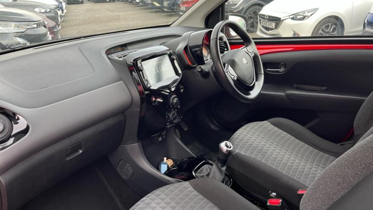 Peugeot 108 1.0 72 Allure 5dr Petrol Hatchback, finished in a smart and eye-catching colour combination and presented in excellent condition throughout. With just 18,334 miles, this vehicle has been very well cared for and drives exactly as it should, making it an ideal choice for first-time drivers, city commuters or anyone looking for a reliable and economical small car.The Allure specification offers a great level of equipment, including alloy wheels, LED daytime running lights, touchscreen infotainment with Bluetooth connectivity, DAB radio, USB input, air conditioning, electric windows and mirrors, cruise control with speed limiter, and a leather-trimmed steering wheel. Everything works perfectly and the interior remains clean, fresh and smoke-free.Powered by Peugeot's efficient 1.0 litre petrol engine, the 108 delivers low running costs, excellent fuel economy and low insurance group ratings, while still being light and responsive to drive. It's easy to manoeuvre, simple to park and comfortable on longer journeys, making it surprisingly versatile for a compact hatchback.This car has been fully inspected by our trained technicians and comes with a comprehensive mechanical and safety check for complete peace of mind. It will be supplied with a full pre-delivery inspection, MOT where required, and a full vehicle history check. We pride ourselves on preparing our vehicles to a very high standard.We offer a range of flexible finance options tailored to suit your budget, competitive part-exchange valuations, and extended warranty packages for added reassurance. Nationwide delivery can also be arranged if required.If you're looking for a stylish, dependable and economical hatchback that's ready to drive away today, this Peugeot 108 is well worth your consideration. Contact our friendly team to arrange a test drive or to discuss your requirements further, we're always happy to help..Carpet mats, Rear wash/wipe, Tinted rear and side windows, Pop-out opening rear side windows, Electric front windows, ABS+Electronic Brake force Distribution, ESP with Hill Assist, Bluetooth system, E-call, Colour Reversing camera, Speed limiter, Electrically assisted power steering, Start/stop system, Trip computer, Service indicator, 7"" Capacitive colour touchscreen, Rev counter, 7"" touch screen, Raven Black door mirrors, Body coloured door mirrors, Electric operated/heated door mirrors, Black door mirrors, 3.5mm jack for external audio device, Steering wheel mounted remote controls, DAB Digital radio, 2 speakers + 2 tweeters, USB socket, Colour coded door handles, Body colour bumpers, Caldera black roof, Rear side wing doors, Static fog lights, Automatic headlights, LED daytime running lights, 3rd brake light, Manual air conditioning, Leather trimmed steering wheel