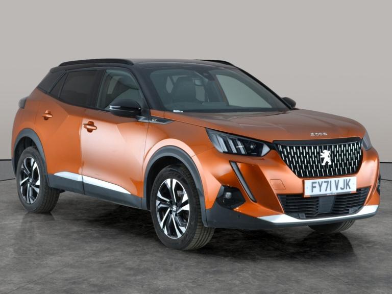 Experience the stylish Peugeot 2008 GT in striking orange, featuring a high-tech Head-Up Display, heated seats for comfort, and a panoramic driving experience with black roof rails. Enjoy effortless journeys with Active Lane Assist, Blind Spot Assist, and Lane Departure Warning System. Connect with ease through Apple CarPlay, Bluetooth audio streaming, and onboard Wifi. LED headlights illuminate the road ahead, while a reversing camera and sat nav add confidence to every drive. Indulge in versatile driving modes and convenient cruise control. 1 service recorded, last serviced on 16/12/2025 at 54,327 miles. MOT to 28/09/2026. Visit our website for service history, online valuation, full vehicle specification plus multiple images. Any feature/option specified here is from 3rd party data. We cannot guarantee the accuracy of any specification supplied by a 3rd party. We recommend that you physically check the specification of the vehicle on site prior to purchase. This information does not form part of the buying contract. Terms & Conditions apply. We have over 2,000 cars available from our 10 national branches, check our website to see all our stock. Our Trustpilot rating is 4.4/5 with over 9,000 reviews.
