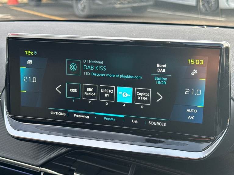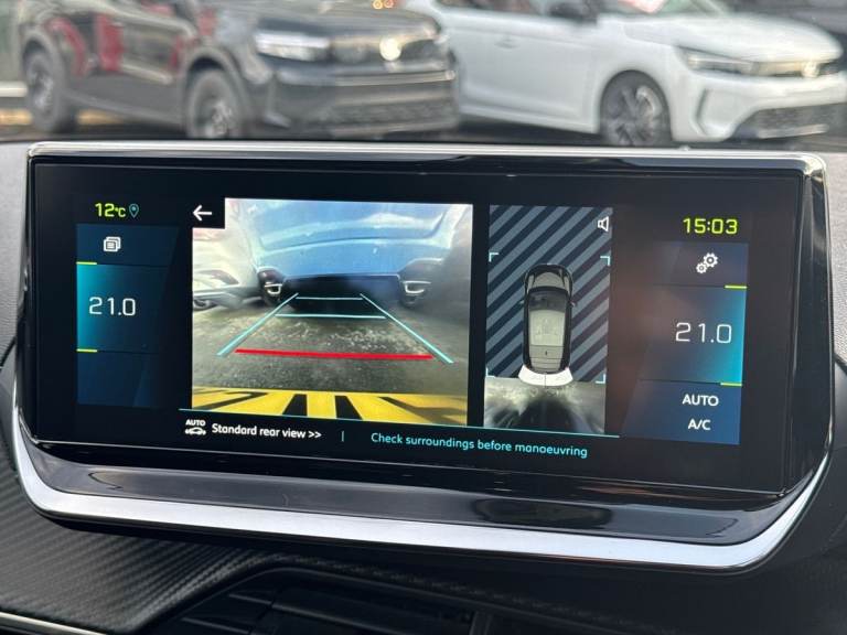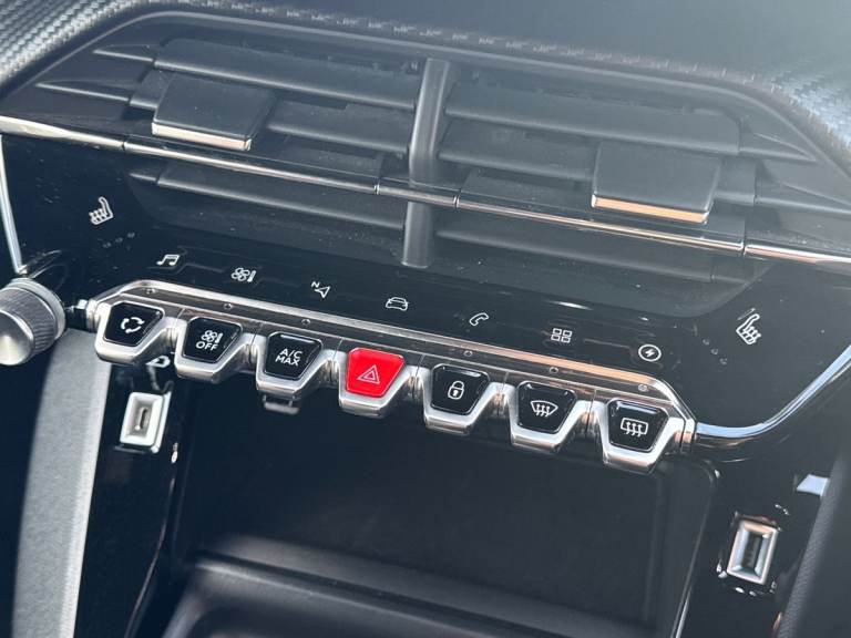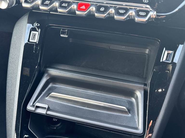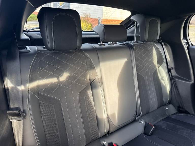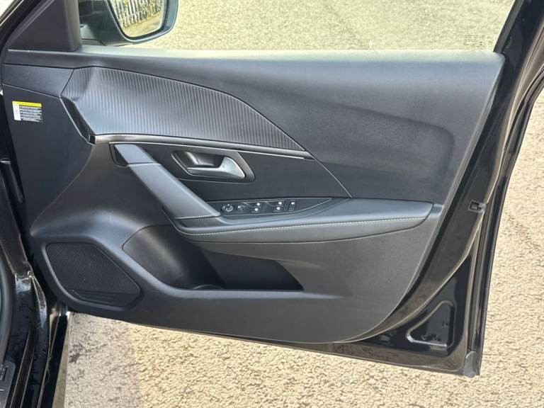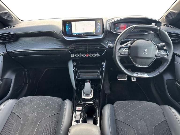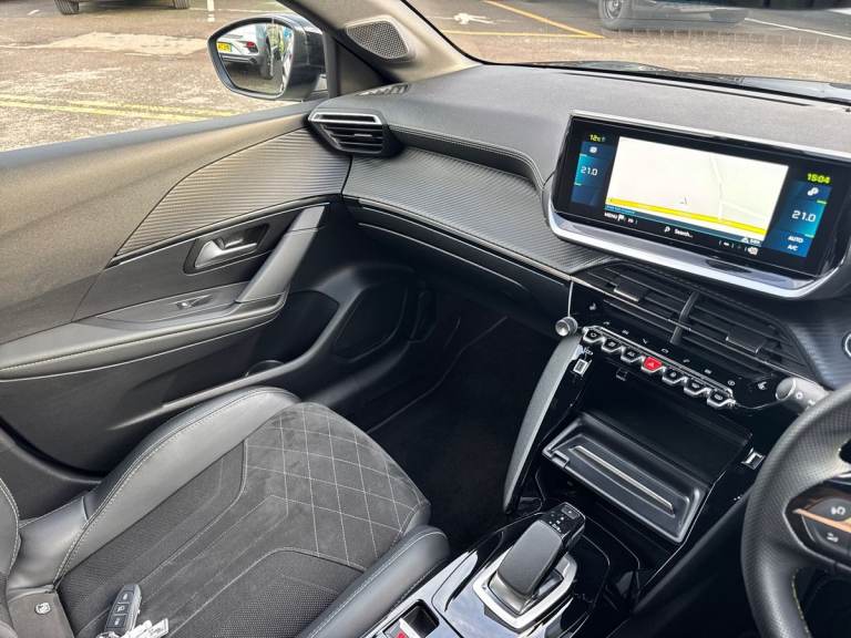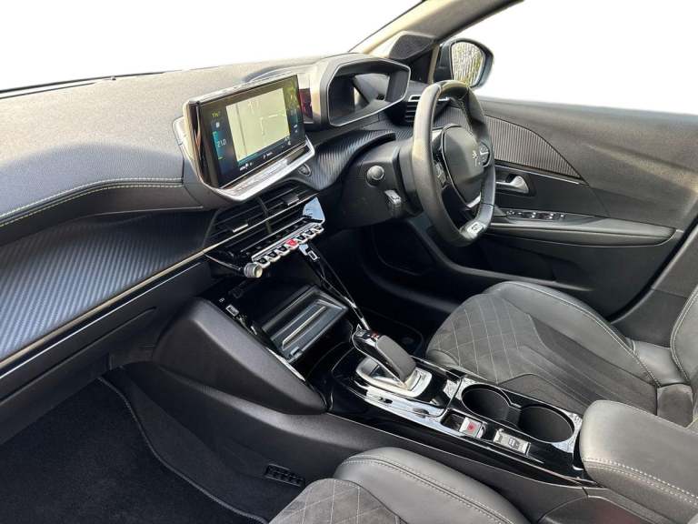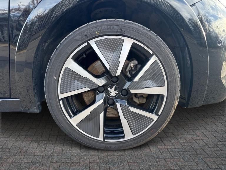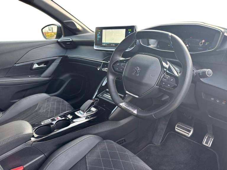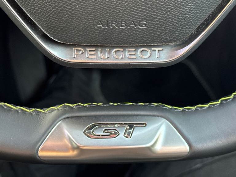 ..10'' Capacitive colour touchscreen with connected 3D navigation, Blind spot monitoring, Bluetooth telephone facility, Driver attention warning, Exterior temperature indicator with ice warning, Mirror screen with mirror link, apple carplay and android auto, Multi function trip computer, PEUGEOT i-Cockpit with compact steering wheel, PEUGEOT i-Cockpit with configurable 3D headup instrument panel, PEUGEOT SOS and assistance, Push button start, Smart phone docking station, Speed limit recognition and recommendation, Visio park assist 180 with colour reversing camera + front and rear parking sensor, 7 kW monophase on board charger, Mode 3 type 2 cable for wallbox charging, 2 front USB socket with USB-C, 2x USB sockets in rear, 6 speakers radio with mp3 compatible, DAB Digital radio, Voice recognition for radio, navigation and telephony features, 2 X Rear number plate lights, Automatic hazard light activation upon heavy brake application, Automatic lights, Automatic windscreen wipers, Body coloured exterior door handles, Dark tinted rear side and tailgate windows, Diamond black rear spoiler (roof), Diamond Black roof, Electric front windows + one touch + anti-pinch, Electric rear windows with one touch/anti-pinch, Electrically adjustable, heated and power folding door mirrors, Follow me home headlights, Frameless electrochrome interior rear view mirror, Full LED headlights with smartbeam assist, Gloss black finish on B pillar, Gloss black rear cluster connecting strip, Gloss black wheel arch extensions, Gloss black window surround, GT model designation badging on tailgate, Headlights left on audible warning, LED daytime running lights with 3 claw headlight with distinctive tooth design, LED side indicator lights integrated into door mirrors, Model designation badges front and rear, Nera black door mirror shells, Peugeot scuff plates, Radiator grille - body colour chequered and gloss black edge trim, Rear bumper with gloss black finish, Rear full LED 3D peugeot signature claw effect lights with daylight function, Rear lower bumper diffuser effect trim in gloss black, Rear reversing lights, Rear windscreen wiper triggered automatically in reverse gear, Roof mounted aerial with fin design, Tailgate with heated rear windscreen and wiper blade, 1/3 to 2/3 split folding rear seats, 12V socket, 8 Colour personalisable ambient lighting, Aluminium pedals and foot rest, Automatic air conditioning, Automatic gear lever in full grain leather and satin chrome, Cobra drive
