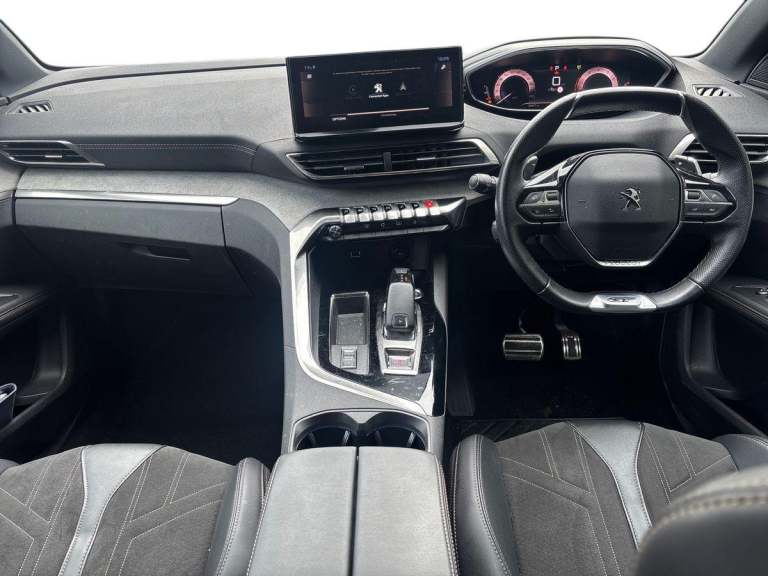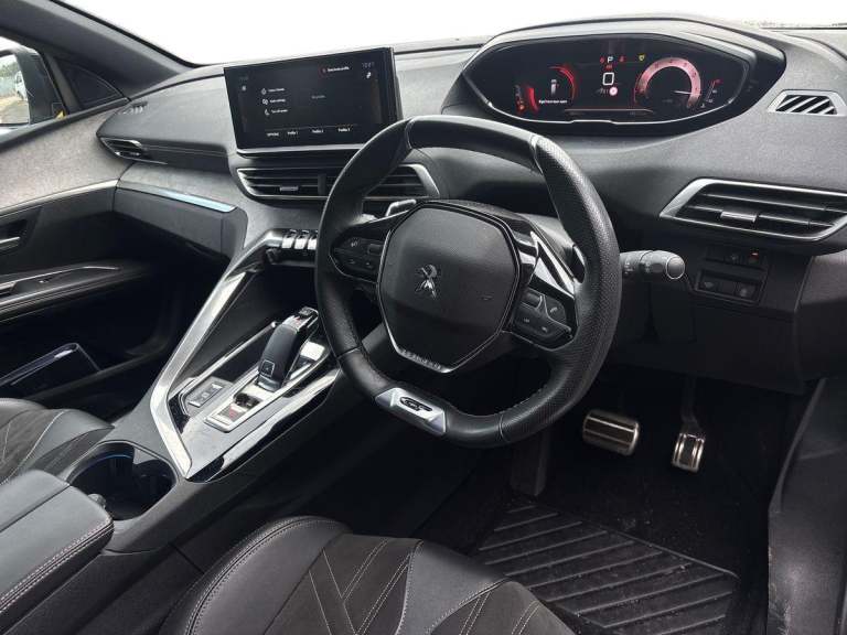 .The fuel efficiency is respectable too, with combined figures around 46 mpg in real-world use for this trim. Now for the GT trim this isnt just any 5008. The GT spec brings premium touches: sportier styling cues, enhanced interior finishes, and a sense of presence that stands out among mid-size SUVs. On the practicality front: this is a genuine 7-seat SUV, with generous space for passengers and luggage even with all seven occupied youre still looking at a large boot space, and with seats folded it becomes impressively versatile. Having only 24,524 miles means youre essentially getting a car thats had its initial break-in done and is ready for many years of ownership with minimal wear. The grey finish gives it a refined, understated look suitable for day-to-day driving, family life, or a smart weekend run. In summary: youre looking at a stylish, refined, versatile family SUV that offers premium finish, solid performance and low mileage. If youre after a car that wins on all frontsstyle, substance and practicalitythis Peugeot 5008 GT is a standout. Would you like a breakdown of its service history, optional extras or running cost estimate?.10'' High Definition Capacitive Touchscreen, 3D connected navigation + voice control, Bluetooth telephone connection, Drive mode selector (Eco, Normal and Power), Driving timer alert system, Extended traffic sign recognition, Exterior temperature indicator with ice warning, Lane departure warning system, Mirror screen with Apple CarPlay and Android auto, Multi function trip computer, Passive blind spot monitoring without Steering correction, Peugeot i-cockpit with configurable 12.3'' headup digital instrumental panel and compact sports steering wheel, PEUGEOT SOS and assistance, Rear passenger USB charging sockets (x2) (type A), Speed limit recognition and recommendation, Sports button, Dynamic stability control and electronic anti-skid system, Bi Tuner radio including DAB, USB socket, Auto self levelling headlights, Automatic activation of hazard warning lights, Black diamond roof and nera black door mirror shells, Body colour door handles, Body coloured rear spoiler, Body protectors in black, Chrome side window trim, Dark tinted rear side and tailgate windows, Door mirrors with auto dipping function in reverse gear, Dynamic frameless design in front radiator grille, Electric folding door mirrors with exterior courtesy LED lighting, Electrically heated door mirrors, Frameless electrochrome rear view mirror,