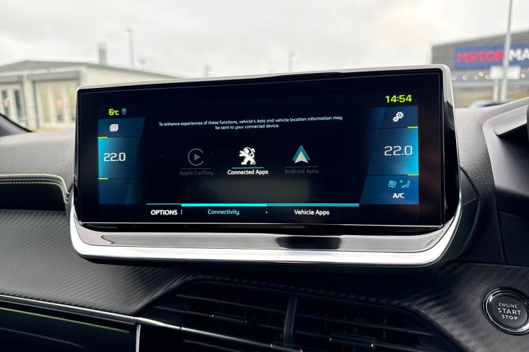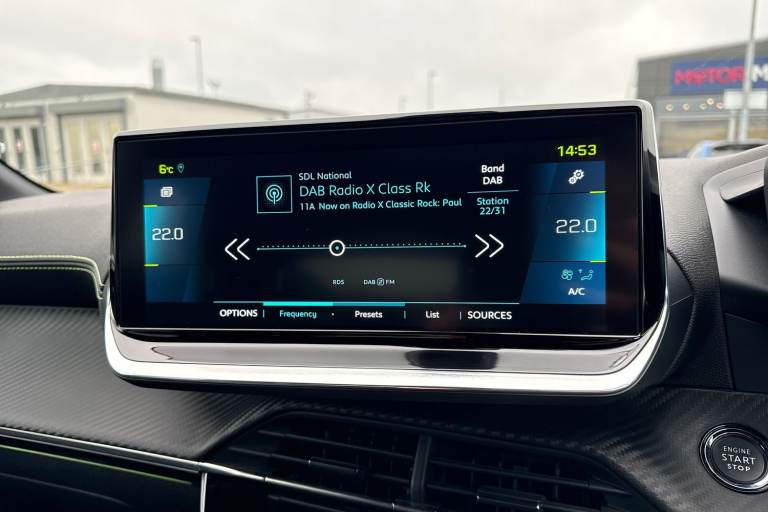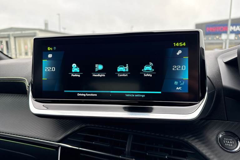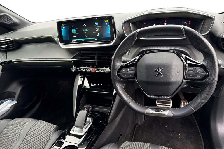 Registration number: RO71KXU Check out this excellent Approved Used Peugeot E-208 GT, now available at Swansway Chester Peugeot. Boasting a 50kWh battery, the E-208 can get an all-electric range of up to 232-miles*, giving you plenty of power for daily driving. Rapid charging is supported, with a 100kW charger offering a 10-80% charge in as little as 30 minutes, while a 7.4kW home charger can provide a full charge in just 7.5 hours, and can be scheduled to take place at off-peak times for even better running costs! This E-208 comes finished in the sleek Nera Black metallic paint, which looks fantastic paired with the 17in Shaw alloy wheels and rear privacy glass. Inside, youll find plush part-leather upholstery, with sports seating offering excellent support. Manual seat adjustment is provided, and Isofix mounting points can be found on the outer rear seats. The front seats are heated, and automatic climate control is provided to keep passengers comfortable! This Peugeot offers an excellent media system, offering access to DAB radio, Bluetooth interface and USB connectivity, so youve plenty of choice when it comes to listening to music! Youve also got the reliable satellite navigation system on board, along with the ability to connect smartphones to use Apple CarPlay and Android Auto, and access your phones apps and maps on the go! The E-208 boasts some useful safety features too, including adaptive cruise control and lane keep assist which come in handy for motorway...