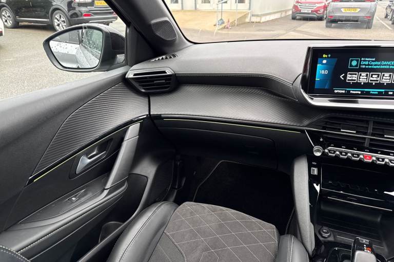 Registration: WG71GGO Check out this excellent Approved Used Peugeot E-208 GT Premium, now available at Swansway Chester Peugeot. Boasting a 50kWh battery, the E-208 can get an all-electric range of up to 232-miles*, giving you plenty of power for daily driving. Rapid charging is supported, with a 100kW charger offering a 10-80% charge in as little as 30 minutes, while a 7.4kW home charger can provide a full charge in just 7.5 hours, and can be scheduled to take place at off-peak times for even better running costs! This E-208 comes finished in the striking Cumulus Grey metallic paint, which looks fantastic paired with the 17in Shaw alloy wheels and rear privacy glass. Inside, youll find plush part-leather upholstery, with sports seating offering excellent support. Manual seat adjustment is provided, and Isofix mounting points can be found on the outer rear seats. The front seats are heated, and automatic climate control is provided to keep passengers comfortable! This Peugeot offers an excellent media system, offering access to DAB radio, Bluetooth interface and USB connectivity, so youve plenty of choice when it comes to listening to music! Youve also got the ability to connect smartphones to use Apple CarPlay and Android Auto, and access your phones apps and maps on the go! The E-208 boasts some useful safety features too, including cruise control and lane keep assist which come in handy for motorway drives. Parking this vehicle couldnt be easier with the help of...