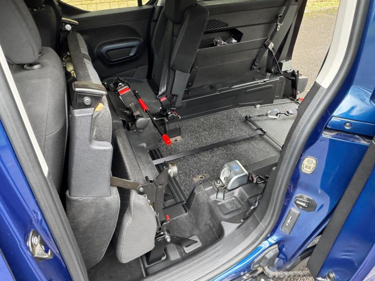 RIFTER ALLUREThis model is a wheelchair accessible vehicle (WAV) which carries 1 wheelchair passenger travelling in their wheelchair, together with their driver, front seat passenger and 1 additional passenger sitting alongside the wheelchair position. Access is via a short, lightweight ramp. This model also has a powered winch to assist with manual wheelchairs. The wheelchair is restrained in the vehicle with a fully tested wheelchair securing system and the wheelchair passenger has their own tested seatbelt. The Peugeot Rifter has an 8-inch touchscreen with Apple CarPlay and Android Auto. All our WAVs are fully type-approved and manufactured in the UK by approved WAV conversion companies. Each vehicle comes fully prepared from Fleximobility with an MOT, thorough service and new cambelt (if due within 8 months). Not all Peugeot Rifter WAVs are the same - different conversions have different features and dimensions. Call us for further help with this, including making sure your wheelchair user has enough headroom. See and try this vehicle for yourself either by appointment at our premises in Oxfordshire or by booking a free home demonstration.