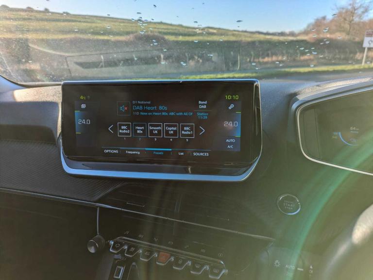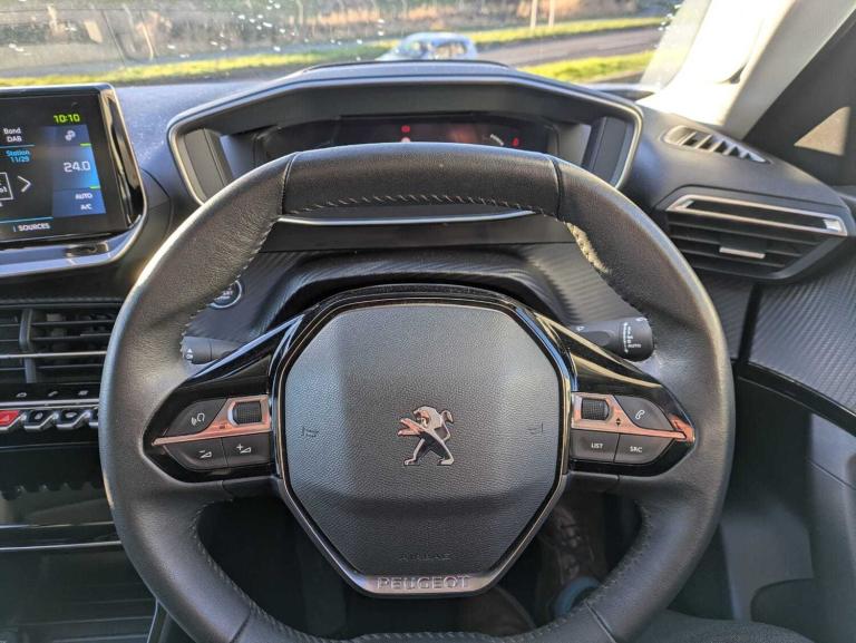 .,.Bluetooth telephone facility, Driver attention warning, e-Toggle driving selector, Exterior temperature indicator with ice warning, Mirror screen with mirror link, apple carplay and android auto, Multi function trip computer, PEUGEOT i-Cockpit with compact steering wheel, PEUGEOT i-Cockpit with configurable 3D headup instrument panel, PEUGEOT SOS and assistance, Rear parking sensor, Smart phone docking station, Speed limit recognition and recommendation, Visio Park 1 with 180 degree Colour reversing camera, 7 kW monophase on board charger, Mode 3 type 2 cable for wallbox charging, 2 front USB socket with USB-C, 2 USB sockets in rear, 6 speakers radio with mp3 compatible, DAB Radio (Digital Audio Broadcasting), Voice recognition for radio, navigation and telephony features, 2 X Rear number plate lights, Automatic hazard light activation upon heavy brake application, Black front wing trim with gloss black detail and e-monogram, Body coloured exterior door handles, Chrome Lion Badge front and rear, Colour coded rear spoiler, Dark tinted rear side and tailgate windows, Diamond black mirror shells, Eco LED headlights, Electric, heated, and power folding door mirrors, Electrochrome rear view mirror, Front bumper - Silver lower trim, Gloss black finish on B pillar, Gloss black longitudinal roof rails, Gloss black rear cluster connecting strip, Gloss black roof bars, Headlights left on audible warning, LED daytime running lights with distinctive tooth design, LED third brake light, Model designation badges front and rear, One touch electric front/rear windows with pinch protection, Radiator grille - body colour chequered and gloss black edge trim, Radiator grille - colour coded top edge trim, Rear full LED 3D peugeot signature claw effect lights with daylight function, Rear reversing lights, Rear side wing doors, Rear windscreen wiper triggered automatically in reverse gear, Tailgate with heated rear windscreen and wiper blade, Variable front intermittent wipers, Wheel arch extensions, 1/3 to 2/3 split folding rear seats, 12v power outlet - front, 12V socket, 3 seat bench in 2nd row, Aluminium pedals, Automatic air conditioning with pollen and active carbon filter, Central front armrest with storage compartment, Driver and front passenger comfort seats, Driver seat manual adjustment - height, longitudinal and back rest angle, Electric power steering with reach and rake adjustable steering column, Front centre armrest, Front LED interior light with 2 reading