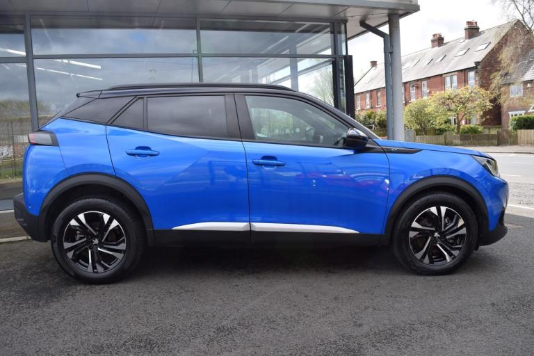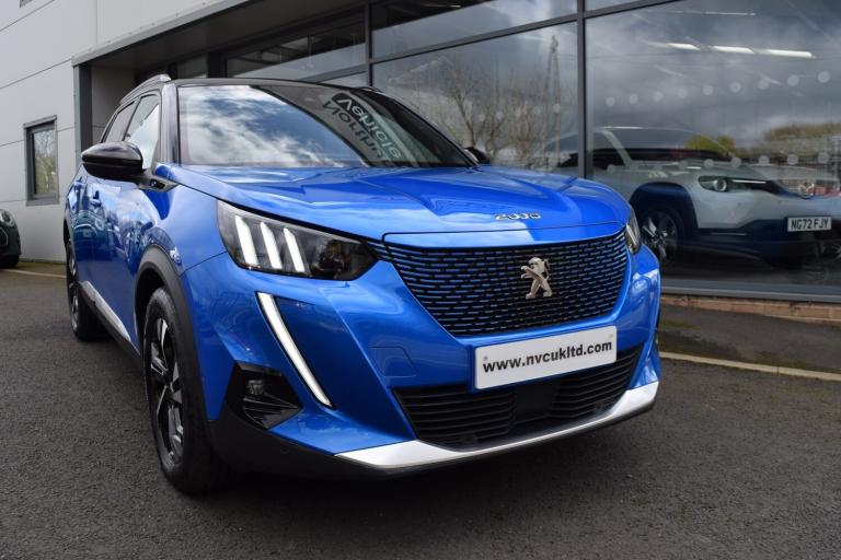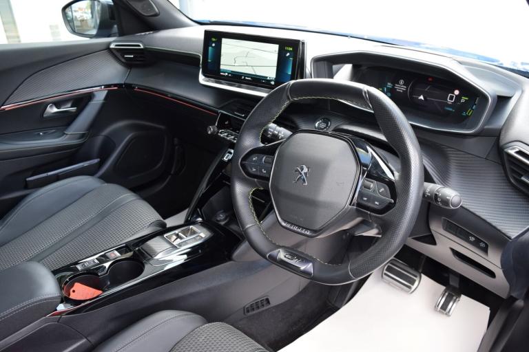 72reg, e-2008 [50kWh] GT, Vertigo Blue metallic with contrasting black roof and door mirrors, Heated seats, Touchscreen Satellite navigation, 180 degree reversing camera, Bluetooth telephone connectivity, LED daytime running lights, LED headlights, Electric folding door mirrors, Peugeot i-Cockpit digital display, Apply CarPlay, Android Auto, DAB - Digital radio with USB/USB-C provision, Cruise control, Speed limiter, Automatic headlight activation, Rain Sensitive wipers, Air conditioning, Rear park sensors, 17"" Alloy wheels, Lane assist, Tyre pressure monitoring, ISOFIX child seat points, Traction control, Front centre armrest, Electric mirrors, Electric windows front and rear, up to 215mile range, with real world being 180+ miles, Type 2 charging cable present, Peugeot service history, Nice example. RAC warranty included, NO EXTRA ADMIN CHARGES OR HIDDEN COSTS.