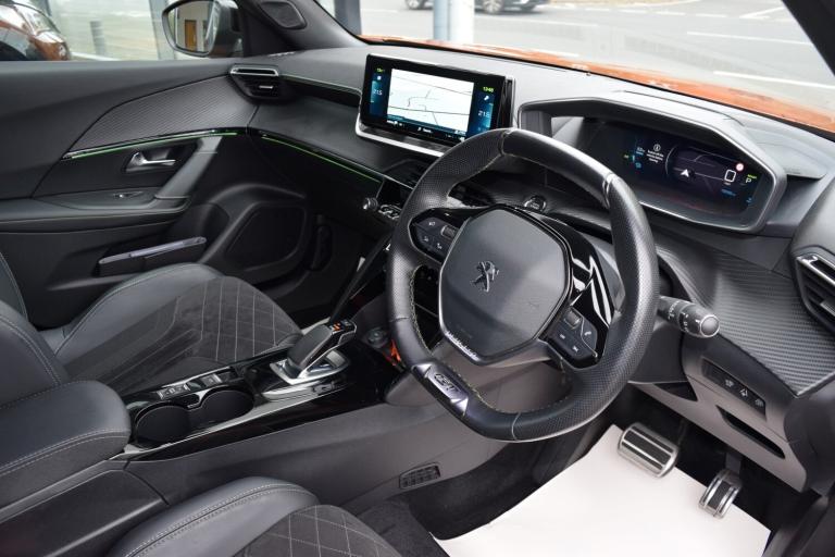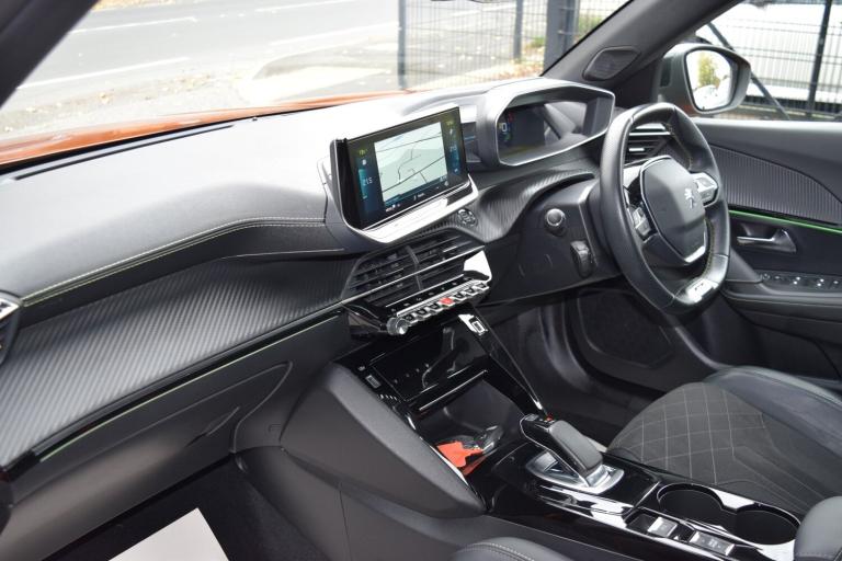 22reg, Peugeot e-2008 [50kWh] GT Premium Automatic, Fusion Orange Metallic with contrasting Diamond black roof and wing mirrors, Colour touchscreen 3D Satellite navigation, 180degree reversing camera, Front and rear park sensors, Automatic air conditioning, DAB digital radio with USB connectivity, Apple CarPlay, Android Auto, Electric folding door mirrors, Adaptive Cruise control, 3d i-Cockpit instrument display, Ambient lighting, Full LED headlights, Multi function steering wheel, On board computer, Automatic headlight activation, Rain sensitive wipers, Blind spot monitoring, Active lane keeping assist, Lane positioning assist, Road sign recognition, Tyre pressure monitoring, ISOFIX child seat points, Front centre armrest, Half leather/Alcantara upholstery, 18"" Alloy wheels, Tinted rear windows Electric windows front and rear, Electric mirrors, Remote central locking and alarm, up to 215mile range, with real world being 180+ miles, Type 2 charging cable present, Service History, Nice example. IIN THE SALE WAS £14985 NOW £13985