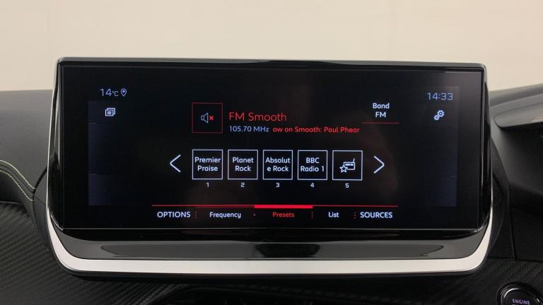 12V Power Socket6-Speaker Radio - MP3 CompatibleBluetooth Telephone FacilityDAB - Digital Audio BroadcastingFront USB Socket x2 including x1 USB-CMirror Screen - Apple CarPlay and Android AutoPeugeot Connect SOS and AssistancePEUGEOT i-Cockpit 10in Capacitive Colour Touchscreen with Connected 3D Navigation includes TomTom Live Updates (3 Year Subscription From New)Rear USB Socket x2Roof Mounted Aerial with Fin DesignSmartphone Docking StationBlind Spot MonitoringDriver Attention WarningExterior Temperature Indicator with Ice WarningGear Shift IndicatorMultifunction Trip ComputerPEUGEOT 3D i-Cockpit - Configurable 3D Head-Up Instrument PanelProgrammable Cruise Control and Speed LimiterTyre Pressure SensorsVisio Park 1 - 180 Degree Colour Reversing CameraVoice Recognition - Radio-Navigation-Telephony FeaturesDark Tinted Rear Side and Tailgate WindowsDiamond Black RoofDoor Mirror Shells - Nera BlackElectric - Heated and Power Folding Door MirrorsExterior Door Handles - Body-ColourGloss Black B PillarGloss Black Rear Cluster Connecting StripGloss Black Wheel Arch ExtensionsGloss Black Window SurroundGT Line Model Designation Badging on C PillarGT Model Designation Badging on TailgateLED Side Indicator Lights Integrated into Door MirrorsModel Designation Badges - Front and RearOne-Touch Electric Front Windows with Pinch ProtectionOne-Touch Electric Rear Windows with Pinch ProtectionRadiator Grille - Dark Chrome Chequered and Gloss Black Edge TrimRear Bumper - Gloss Black FinishRear Lower Bumper Gloss Black Diffuser Effect TrimRear Number Plate Lights x2Rear Spoiler - Diamond BlackSpace Saver Spare WheelTailgate with Heated Rear Windscreen and Wiper BladeVisibility PackFull LED Headlights with Smartbeam AssistHeadlights Left On Audible WarningLED Daytime Running Lights - 3-Claw Headlight with Distinctive Tooth DesignRear Full LED 3D Peugeot Signature Claw Effect Lights with Daylight Function8-Colour Customisable Ambient LightingAir Conditioning - AutomaticCarpet MatsCentral Front Armrest with Storage CompartmentDashboard - Front and Rear Door Panel Finish - Carbon EffectDriver and Front Passenger Seat Mechanical Height AdjustmentDriver and Front Passenger Sport SeatsFrameless Electrochrome Rear View MirrorFront Optimised Safety Headrests and Rear Retractable Headrests - x3 - Height-AdjustableGear Lever with Satin Chrome DetailHigh Centre Console with 2 Cup HoldersLED Front Interior Light with Reading
