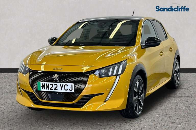 This 2022 Peugeot E-208 GT Premium boasts exceptionally low mileage for its age, having covered just 12,938 miles, and benefits from a recent service completed on 31st January 2026. As an electric vehicle, it features a 50 kWh battery offering a maximum range of 225 miles when new. Charging is convenient, with a full charge at home using a 7kW charger taking approximately 7 hours and 30 minutes, while rapid public charging can replenish the battery from empty to 80% in as little as 30 minutes. This exceptional vehicle boasts a wealth of premium features, including Satellite Navigation, Cruise Control, Bluetooth, Front & Rear Parking Sensors, Rear Parking Camera, Drive Modes, Apple CarPlay & Android Auto.The GT Premium trim level ensures a well equipped driving experience, highlighting the E-208's appeal over other electric cars in its class. Its electric powertrain provides a smooth and quiet drive, ideal for both city commuting and longer journeys. The combination of its impressive range, efficient charging capabilities, and the comprehensive service history makes this Peugeot E-208 a compelling choice for those seeking a modern and economical electric car.At Sandicliffe, we’re proud to be a family-owned business that’s been supporting motorists across the East Midlands for over 75 years representing BYD, Ford, Mazda and MG. Our commitment to quality, care, and community means you can buy with complete confidence, our technicians are highly qualified ensuring that our vehicles are meticulously prepared and maintained. Additionally, we offer a minimum 6-month MOT for added assurance. This car is Located at our Loughborough siteDerby RoadLoughboroughLE115HN