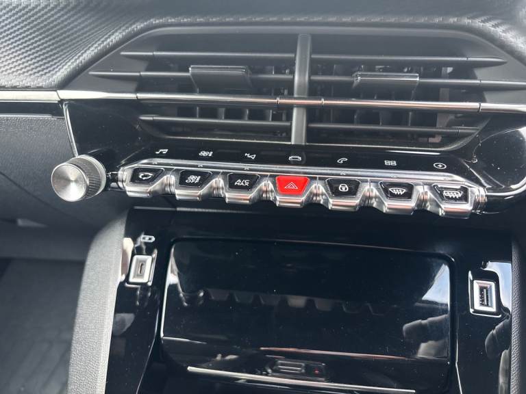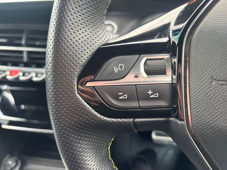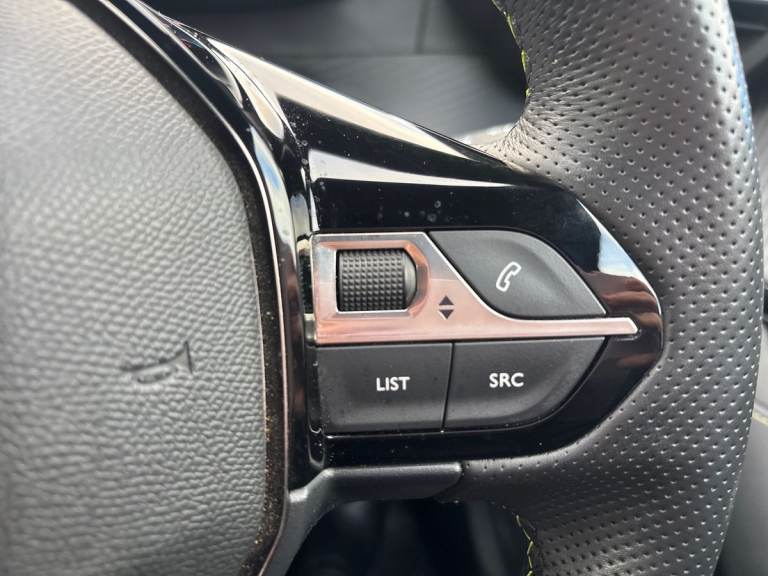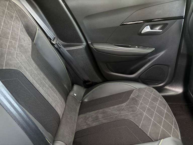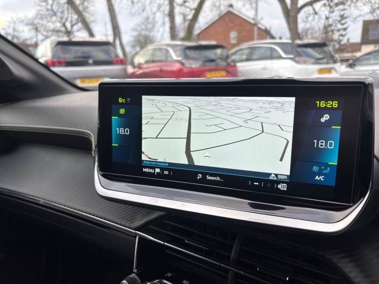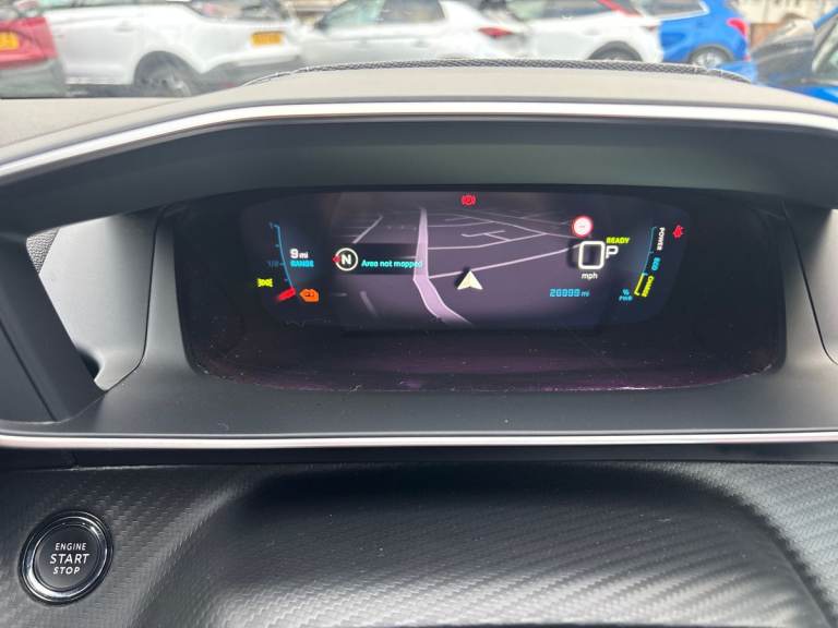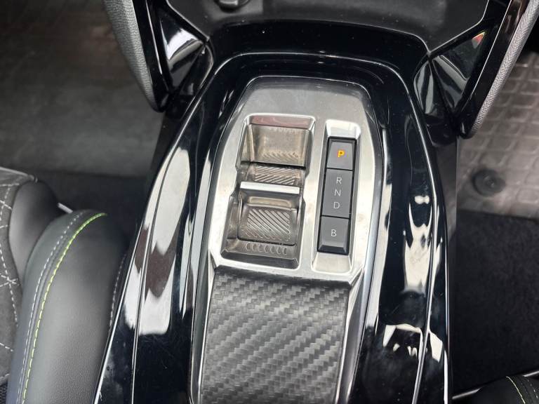 ..10'' Capacitive colour touchscreen with connected 3D navigation, Blind spot monitoring, Bluetooth telephone facility, Driver attention warning, e-Toggle driving selector, Exterior temperature indicator with ice warning, Mirror screen with mirror link, apple carplay and android auto, Multi function trip computer, PEUGEOT i-Cockpit with compact steering wheel, PEUGEOT i-Cockpit with configurable 3D headup instrument panel, PEUGEOT SOS and assistance, Push button start, Smart phone docking station, Speed limit recognition and recommendation, Visio park assist 180 with colour reversing camera + front and rear parking sensor, 7 kW monophase on board charger, Mode 3 type 2 cable for wallbox charging, 2 front USB socket with USB-C, 2x USB sockets in rear, 6 speakers radio with mp3 compatible, DAB Digital radio, Voice recognition for radio, navigation and telephony features, 2 X Rear number plate lights, Automatic hazard light activation upon heavy brake application, Automatic lights, Automatic windscreen wipers, Body coloured exterior door handles, Dark tinted rear side and tailgate windows, Diamond black rear spoiler (roof), Diamond Black roof, Dichroic badging in front lion with e monogram on C pillar and tailgate, Electric front windows + one touch + anti-pinch, Electric rear windows with one touch/anti-pinch, Electrically adjustable, heated and power folding door mirrors, Follow me home headlights, Frameless electrochrome interior rear view mirror, Full LED headlights with smartbeam assist, Gloss black finish on B pillar, Gloss black rear cluster connecting strip, Gloss black wheel arch extensions, Gloss black window surround, GT model designation badging on tailgate, Headlights left on audible warning, LED daytime running lights with 3 claw headlight with distinctive tooth design, LED side indicator lights integrated into door mirrors, LED third brake light, Model designation badges front and rear, Nera black door mirror shells, Peugeot scuff plates, Radiator grille - body colour chequered and gloss black edge trim, Rear bumper with gloss black finish, Rear full LED 3D peugeot signature claw effect lights with daylight function, Rear lower bumper diffuser effect trim in gloss black, Rear reversing lights, Rear side wing doors, Rear windscreen wiper triggered automatically in reverse gear, Roof mounted aerial with fin design, Roof spoiler, Tailgate with heated rear windscreen and wiper blade, Variable front intermittent wipers, 1/3 to 2/3 split folding