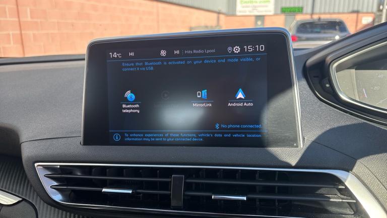 12V Sockets x3 - Dashboard - Rear Cabin and Load Area6-Speaker Radio - MP3 CompatibleBi-Tuner Radio including DAB - Digital RadioBluetooth Telephone FacilityMirror Screen - Apple CarPlay and Android AutoUSB Socket180 Degree Colour Reversing Camera with Wash SystemBlue Ambient Lighting to Head-Up Instrument PanelDriving Time Warning - DAA1Extended Traffic Sign RecognitionExterior Temperature Indicator with Ice WarningGear Shift IndicatorLane Departure Warning SystemMode SelectorMultifunction Trip ComputerParking Sensors - FrontProgrammable Cruise Control and Speed Limiter with Intelligent Speed AdaptionRear Parking Aid17in Alloy Wheels - ChicagoDoor Mirror Shells - Diamond BlackElectric - Heated and Power Folding Door Mirrors With Courtsey LED Floor LightingExterior Door Handles - Body-ColourFront Radiator Grille - Classic - Frameless DesignFront Wing Trim - BlackGloss Black B and C Pillar and Aerodynamic Deflector TrimGloss Black Front Bumper Air ScoopsGloss Black Rear Cluster Connecting StripGloss Black Windscreen TrimHeated Rear Windscreen with Integrated AntennaLED Front IndicatorsLED Side Indicator Lights Integrated into Door MirrorsLower Front Bumper - SIlverOne-Touch Electric Front and Rear Windows with Pinch ProtectionPuncture Repair Kit including Compressor - Sealant Cartridge and Towing EyeRear Bumper Facia - ChromeRear Spoiler - Body Colour with Stainless Steel Edging TrimRoof - Body ColourSide Window Trim - Black RubberStainless Steel Roof Arch TrimTinted Rear Side and Tailgate WindowsVisibility PackDoor Mirror Mounted LED Courtesy Approach LightsEco LED HeadlightsHeadlights Left On Audible WarningLED Daytime Running Lights - Fang StyleRear LED Peugeot Signature Claw Effect Lights with Daylight Function and Scrolling LED Direction IndicatorsAir Conditioning - Automatic Dual Zone Climate ControlBlue Ambient Lighting for Connecting ZoneBrumeo Fabric Trimmed Door ArmrestsCentral Front Armrest with Butterfly-Wing Opening and Illuminated CompartmentDashboard Trim - Satin ChromeDigital Instrument Panel Trim - Satin ChromeFlocked Glove Box InteriorFront Central Console with Two Cup-HoldersFront Interior Light with Reading Spotlights x2 and Rear Interior Light with Reading Spotlights x2 - with TimerFront Optimised Safety Headrests and Rear Retractable Headrests - x3 - Height-AdjustableFront Windscreen Wiper with Magic Wash Cleaning SystemGrab Handles x4 - Retractable - DampedHands Free Start