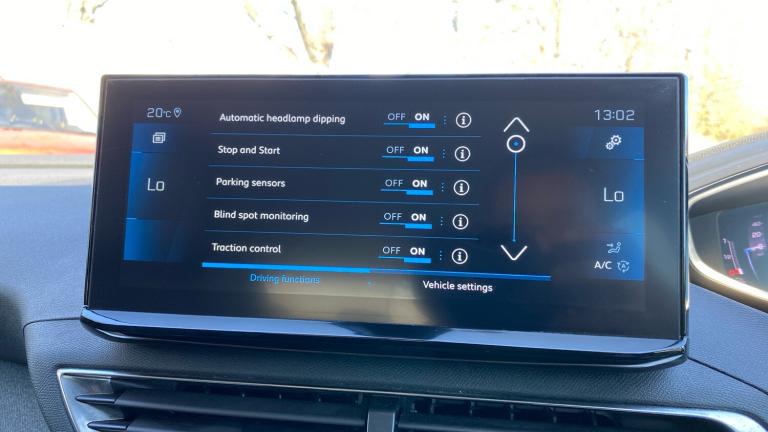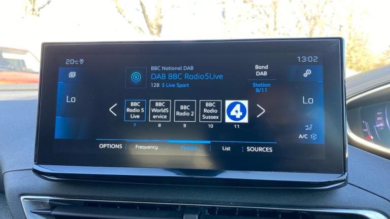12V Sockets x3 - Dashboard - Rear Cabin and Load Area3D Connected Navigation6-Speaker Radio - MP3 CompatibleBi-Tuner Radio including DAB - Digital RadioBluetooth Telephone FacilityMirror Screen - Apple CarPlay and Android AutoUSB Socket180 Degree Colour Reversing Camera with Wash SystemBlue Ambient Lighting to Head-Up Instrument PanelDriving Time Warning - DAA1Extended Traffic Sign RecognitionExterior Temperature Indicator with Ice WarningGear Shift IndicatorLane Departure Warning SystemMode SelectorMultifunction Trip ComputerParking Sensors - FrontProgrammable Cruise Control and Speed Limiter with Intelligent Speed AdaptionRear Parking Aid18in Alloy Wheels - Detroit - Storm Grey - Diamond CutAluminium Longitudinal Roof BarsDark Tinted Rear Side and Tailgate WindowsDoor Mirror Shells - Diamond BlackElectric Door Mirrors with Blind Spot Detection Indicator and Auto Dipping Function in Reverse GearExterior Door Handles - Body-ColourFront and Rear Door and Sill Protectors with Polished Stainless Steel InsertFront Radiator Grille - Classic - Frameless DesignFront Wing Trim - Black with Chrome DetailGloss Black B and C Pillar and Aerodynamic Deflector TrimGloss Black Front Bumper Air ScoopsGloss Black Rear Cluster Connecting StripGloss Black Windscreen TrimHeated Rear Windscreen with Integrated AntennaLED Front IndicatorsLED Side Indicator Lights Integrated into Door MirrorsLower Front Bumper - SIlverOne-Touch Electric Front and Rear Windows with Pinch ProtectionPuncture Repair Kit including Compressor - Sealant Cartridge and Towing EyeRear Bumper Facia - ChromeRear Spoiler - Body Colour with Stainless Steel Edging TrimRoof - Body ColourSide Window Trim - Black RubberStainless Steel Roof Arch TrimVisibility PackDoor Mirror Mounted LED Courtesy Approach LightsEco LED HeadlightsHeadlights Left On Audible WarningLED Daytime Running Lights - Fang StyleRear LED Peugeot Signature Claw Effect Lights with Daylight Function and Scrolling LED Direction Indicators1-3 - 2-3 Folding Rear SeatAir Conditioning - Automatic Dual Zone Climate ControlBlue Ambient Lighting for Connecting ZoneBlue Ambient Lighting to Front Door PanelsBrumeo Fabric Trimmed Door ArmrestsCentral Front Armrest with Butterfly-Wing Opening and Illuminated CompartmentDashboard Trim - Satin ChromeDigital Instrument Panel Trim - Satin ChromeFlocked Glove Box InteriorFootwell LightingFront Central Console with Two Cup-HoldersFront Door Panel Recess