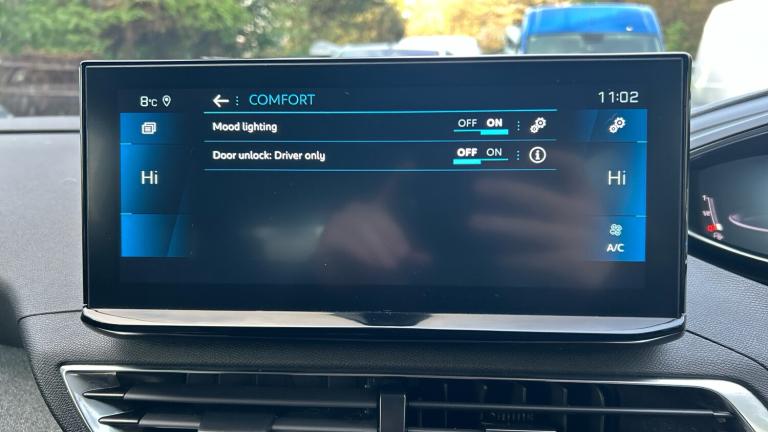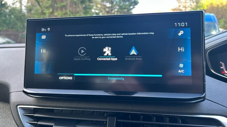 12V Sockets x3 - Dashboard - Rear Cabin and Load Area3D Connected Navigation6-Speaker Radio - MP3 CompatibleBi-Tuner Radio including DAB - Digital RadioBluetooth Telephone FacilityMirror Screen - Apple CarPlay and Android AutoUSB Socket180 Degree Colour Reversing Camera with Wash SystemBlue Ambient Lighting to Head-Up Instrument PanelDriving Time Warning - DAA1Extended Traffic Sign RecognitionExterior Temperature Indicator with Ice WarningGear Shift IndicatorLane Departure Warning SystemMode SelectorMultifunction Trip ComputerParking Sensors - FrontProgrammable Cruise Control and Speed Limiter with Intelligent Speed AdaptionRear Parking Aid18in Alloy Wheels - Detroit - Storm Grey - Diamond CutAluminium Longitudinal Roof BarsDark Tinted Rear Side and Tailgate WindowsDoor Mirror Shells - Diamond BlackElectric Door Mirrors with Blind Spot Detection Indicator and Auto Dipping Function in Reverse GearExterior Door Handles - Body-ColourFront and Rear Door and Sill Protectors with Polished Stainless Steel InsertFront Radiator Grille - Classic - Frameless DesignFront Wing Trim - Black with Chrome DetailGloss Black B and C Pillar and Aerodynamic Deflector TrimGloss Black Front Bumper Air ScoopsGloss Black Rear Cluster Connecting StripGloss Black Windscreen TrimHeated Rear Windscreen with Integrated AntennaLED Front IndicatorsLED Side Indicator Lights Integrated into Door MirrorsLower Front Bumper - SIlverOne-Touch Electric Front and Rear Windows with Pinch ProtectionPuncture Repair Kit including Compressor - Sealant Cartridge and Towing EyeRear Bumper Facia - ChromeRear Spoiler - Body Colour with Stainless Steel Edging TrimRoof - Body ColourSide Window Trim - Black RubberStainless Steel Roof Arch TrimVisibility PackDoor Mirror Mounted LED Courtesy Approach LightsEco LED HeadlightsHeadlights Left On Audible WarningLED Daytime Running Lights - Fang StyleRear LED Peugeot Signature Claw Effect Lights with Daylight Function and Scrolling LED Direction Indicators1-3 - 2-3 Folding Rear SeatAir Conditioning - Automatic Dual Zone Climate ControlBlue Ambient Lighting for Connecting ZoneBlue Ambient Lighting to Front Door PanelsBrumeo Fabric Trimmed Door ArmrestsCentral Front Armrest with Butterfly-Wing Opening and Illuminated CompartmentDashboard Trim - Satin ChromeDigital Instrument Panel Trim - Satin ChromeFlocked Glove Box InteriorFootwell LightingFront Central Console with Two Cup-HoldersFront Door Panel Recess