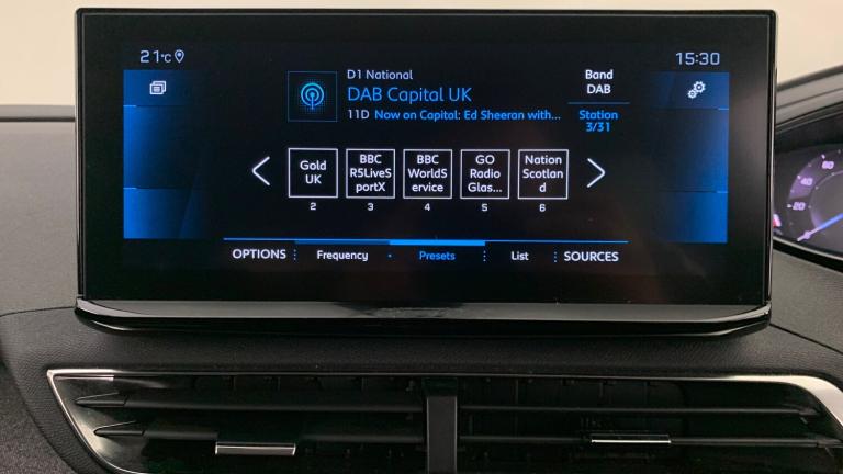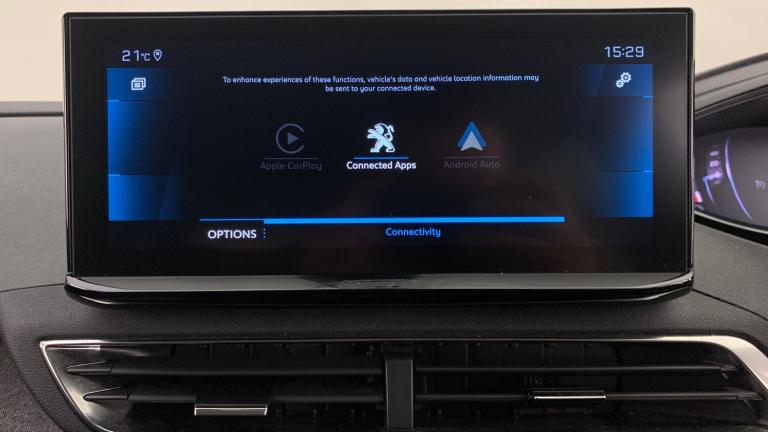 12V Sockets x3 - Dashboard - Rear Cabin and Load Area3D Connected Navigation6-Speaker Radio - MP3 CompatibleBi-Tuner Radio including DAB - Digital RadioBluetooth Telephone FacilityMirror Screen - Apple CarPlay and Android AutoUSB Socket180 Degree Colour Reversing Camera with Wash SystemBlue Ambient Lighting to Head-Up Instrument PanelDriving Time Warning - DAA1Extended Traffic Sign RecognitionExterior Temperature Indicator with Ice WarningGear Shift IndicatorLane Departure Warning SystemMode SelectorMultifunction Trip ComputerParking Sensors - FrontProgrammable Cruise Control and Speed Limiter with Intelligent Speed AdaptionRear Parking Aid18in Alloy Wheels - Detroit - Storm Grey - Diamond CutAluminium Longitudinal Roof BarsDark Tinted Rear Side and Tailgate WindowsDoor Mirror Shells - Diamond BlackElectric Door Mirrors with Blind Spot Detection Indicator and Auto Dipping Function in Reverse GearExterior Door Handles - Body-ColourFront and Rear Door and Sill Protectors with Polished Stainless Steel InsertFront Radiator Grille - Classic - Frameless DesignFront Wing Trim - Black with Chrome DetailGloss Black B and C Pillar and Aerodynamic Deflector TrimGloss Black Front Bumper Air ScoopsGloss Black Rear Cluster Connecting StripGloss Black Windscreen TrimHeated Rear Windscreen with Integrated AntennaLED Front IndicatorsLED Side Indicator Lights Integrated into Door MirrorsLower Front Bumper - SIlverOne-Touch Electric Front and Rear Windows with Pinch ProtectionPuncture Repair Kit including Compressor - Sealant Cartridge and Towing EyeRear Bumper Facia - ChromeRear Spoiler - Body Colour with Stainless Steel Edging TrimRoof - Body ColourSide Window Trim - Black RubberStainless Steel Roof Arch TrimVisibility PackDoor Mirror Mounted LED Courtesy Approach LightsEco LED HeadlightsHeadlights Left On Audible WarningLED Daytime Running Lights - Fang StyleRear LED Peugeot Signature Claw Effect Lights with Daylight Function and Scrolling LED Direction Indicators1-3 - 2-3 Folding Rear SeatAir Conditioning - Automatic Dual Zone Climate ControlBlue Ambient Lighting for Connecting ZoneBlue Ambient Lighting to Front Door PanelsBrumeo Fabric Trimmed Door ArmrestsCentral Front Armrest with Butterfly-Wing Opening and Illuminated CompartmentDashboard Trim - Satin ChromeDigital Instrument Panel Trim - Satin ChromeFlocked Glove Box InteriorFootwell LightingFront Central Console with Two Cup-HoldersFront Door Panel Recess