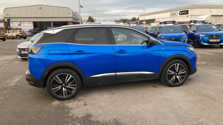 Now here’s an absolute gem that has just arrived with us at Peugeot Derby, and she is already rightly garnering some serious attention. This Peugeot 3008 GT is nothing short of sensational value for money, and she certainly isn’t going to be hanging around. Although she looks absolutely stunning in the pictures, you really need to see this beauty in the metal to appreciate her properly. It’s obviously a beautiful piece of design and engineering, but you’ll also notice just what seriously impressive condition she is in. Since she was first registered in 2022, she has covered just a meagre 13,035 miles on our beloved roads. You can be rest assured that she is in just as good shape mechanically as she is cosmetically, as she boasts a FULL service history. Additionally, her MOT runs through until September 26, so all you need to do is drive away and enjoy everything she has to offer. The treats don’t end there though, as she boasts a seriously impressive range of features including Front and Rear Parking Sensors, Satellite Navigation, Bluetooth Connectivity, Reversing Camera, Adaptive Cruise Control, Auto Lights, Auto Wiper, Panoramic Roof and Keyless Ignition just to name a few. With all this in mind we can only describe her as sensational value for money and she certainly won’t be hanging around, so please don’t hesitate to contact the team at Peugeot Derby to arrange your unforgettable test drive today. We are located off Sir Frank Whittle Road in Derby, the best postcode to use is DE21 4RX. We look forward to seeing you soon!.Air Conditioning, Climate Control, Metallic Paint, Cruise Control, Satellite Navigation, Alloy Wheels, DAB Radio, Bluetooth, Panoramic Roof, Parking Sensors, Low Mileage, USB, Sun Roof, Diamond Cut Alloy Wheels, Adaptive cruise, Apple-Android Play, Rear Camera, Auto Lights, Electric Folding Mirrors, Lane Departure& Rain Sensors, Mistral floor mats with Aikinite contrast stitching, Heated rear windscreen with integrated antenna, One touch electric front/rear windows with pinch protection, Front windscreen wiper with magic wash cleaning system, Dark tinted rear side windows + tailgate window, Automatic triggered rear windscreen wiper in reverse gear, Electric parking brake, Front ventilated disc brakes and rear disc brakes, ABS (Anti-lock Braking System) with EBD (Electronic Braking Distribution) and EBA (Emergency Braking Assistance), Hill start assist, Dynamic stability control and electronic anti-skid system, Bluetooth telephone facility