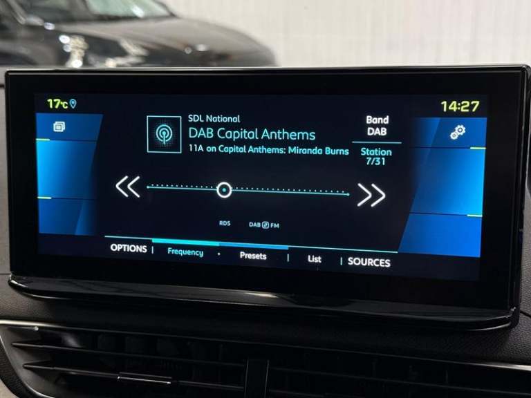 12V Sockets x3 - Dashboard - Rear Cabin and Load Area, 3D Connected Navigation, Bi-Tuner Radio including DAB - Digital Radio, Bluetooth Telephone Facility, Charging - Deferred Charging Option - Configurable in Car on Via My PEUGEOT App, FOCAL Premium 10 Speaker HIFI Speaker System, Mirror Screen - Apple CarPlay and Android Auto, Peugeot Connect SOS and Assistance, Rear Passenger USB Charging Sockets x2 - Type A, Twin USB Charging Sockets - Rear Centre Console, USB Socket, Blue Ambient Lighting to Head-Up Instrument Panel, Driving Time Warning - DAA1, Extended Traffic Sign Recognition, Exterior Temperature Indicator with Ice Warning, Gear Shift Indicator, Lane Departure Warning System, Mode Selector, Multifunction Trip Computer, Parking Sensors - Front, Rear Parking Aid, 19in Alloy Wheels - San Francisco - Matt Onyx Black - Diamond Cut, Aluminium Longitudinal Roof Bars, Chrome Window Line Trim, Dark Tinted Rear Side and Tailgate Windows, Door Mirror Shells - Nera Black, Electric Door Mirrors with Blind Spot Detection Indicator and Auto Dipping Function in Reverse Gear, Exterior Door Handles - Body-Colour, Front Door Sills with Stainless Steel Insert Featuring PEUGEOT Lettering, Front Radiator Grille - Dynamic - Frameless Design, Front Wing Trim - Black with Chrome Detail, Front and Rear Door and Sill Protectors with Polished Stainless Steel Insert, Gloss Black B and C Pillar and Aerodynamic Deflector Trim, Gloss Black Front Bumper Air Scoops, Gloss Black Rear Cluster Connecting