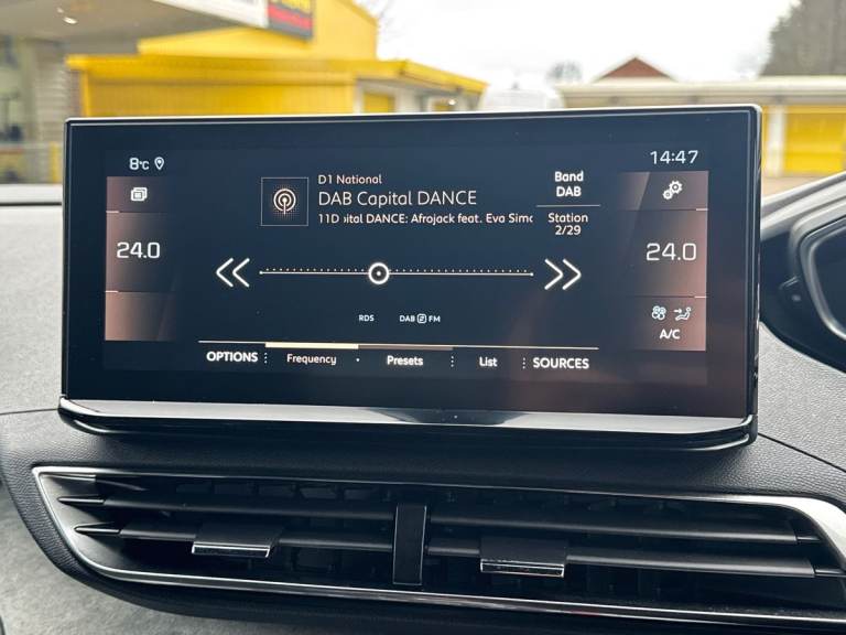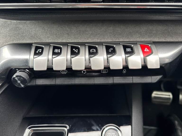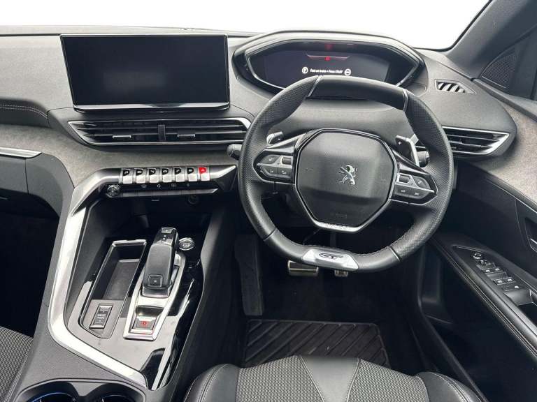 ..180 degree colour reversing camera, 3D connected navigation with 10'' HD touchscreen, Apple car play and Android auto, Bluetooth telephone facility, Drive modes select (Eco, normal and sport), Driving Time Warning (DAA1), Emergency services call system, Extended traffic sign recognition, Exterior temperature indicator with ice warning, Multi function trip computer, PEUGEOT i-Cockpit with 10'' high definition capacitive touchscreen, Peugeot i-cockpit with compact multi-function sports steering wheel, PEUGEOT i-Cockpit with configurable 12.3'' Head-up digital instrument panel, PEUGEOT SOS and assistance, Rear passenger USB charging sockets (x2) (type A), Speed limit recognition and recommendation, Voice recognition, Dynamic stability control and electronic anti-skid system, Stop/start function, DAB Digital radio, USB socket, Auto self levelling headlights, Automatic hazard light activation upon heavy brake application, Automatic triggered rear windscreen wiper in reverse gear, Black with chrome detailed front wing trim, Body colour door handles, Body colour rear roof spoiler with stainless steel edging trim, Body protectors (bottom of front and rear bumpers + wheel arches + protection at bottom of doors) in black, Dark tinted rear side windows + tailgate window, Diamond Black door mirror shells, Door mirror mounted LED courtesy floor lighting, Electric folding door mirrors with exterior courtesy LED lighting, Electric operated/heated door mirrors, Fog Mode, Front windscreen wiper with magic wash cleaning system, Full LED headlights with LED fog lights with static cornering function, Gloss black B and C pillar and aerodynamic deflector trim, Gloss black front bumper air scoops, Gloss black rear cluster connecting strip, Gloss black windscreen trim, GT emblem in satin copper (front wings and tailgate), Headlights left on audible warning, Heated rear windscreen with integrated antenna, LED daytime running lights, LED front indicator, LED rear number plate lighting, LED side indicator lights integrated into door mirrors, LED third brake light, One touch electric front/rear windows with pinch protection, Rear LED Peugeot signature 'Claw Effect' lights, Rear side wing doors, Stainless steel roof arches, Twin exhaust tailpipe, 1/3 to 2/3 split folding rear seats, 12V Sockets in dashboard, rear cabin and load area, 2 cupholders in front centre console, 2 cupholders in rear armrest, 2 x Rear reading spotlights, 2x Rear coat hooks, 3x Isofix child seat fittings in