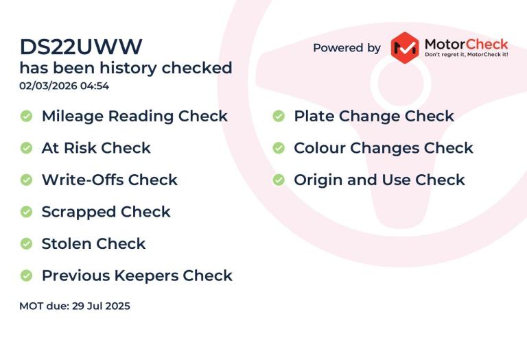 Our vehicle history check is provided for guidance only. Please check all the details with the seller before purchasing