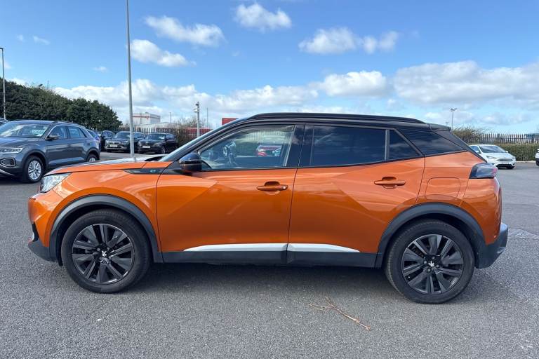Registration: DS22UWW New into stock, this excellent Approved Used Peugeot E-2008 GT Premium, now available at Swansway Chester Peugeot. Boasting a 50kWh battery, the E-2008 can get an all-electric range of up to 212-miles*, giving you plenty of power for daily driving. Rapid charging is supported, with a 100kW charger offering a 10-80% charge in as little as 30 minutes, while a 7.4kW home charger can provide a full charge in just 7.5 hours, and can be scheduled to take place at off-peak times for even better running costs! This E-2008 comes finished in the vibrant Orange Fusion metallic paint, which looks fantastic paired with the 18in Evissa alloy wheels and rear privacy glass. Inside, youll find plush part-leather upholstery, with sports seating offering excellent support. Manual seat adjustment is provided, and Isofix mounting points can be found on the outer rear seats. Automatic climate control is provided to keep passengers comfortable! This Peugeot offers an excellent media system, offering access to DAB radio, Bluetooth interface and USB connectivity, so youve plenty of choice when it comes to listening to music! Youve also got the reliable satellite navigation system on board, along with the ability to connect smartphones to use Apple CarPlay and Android Auto, and access your phones apps and maps on the go! The E-2008 boasts some useful safety features too, including cruise control and lane keep assist which come in handy for motorway drives. Parking this v...