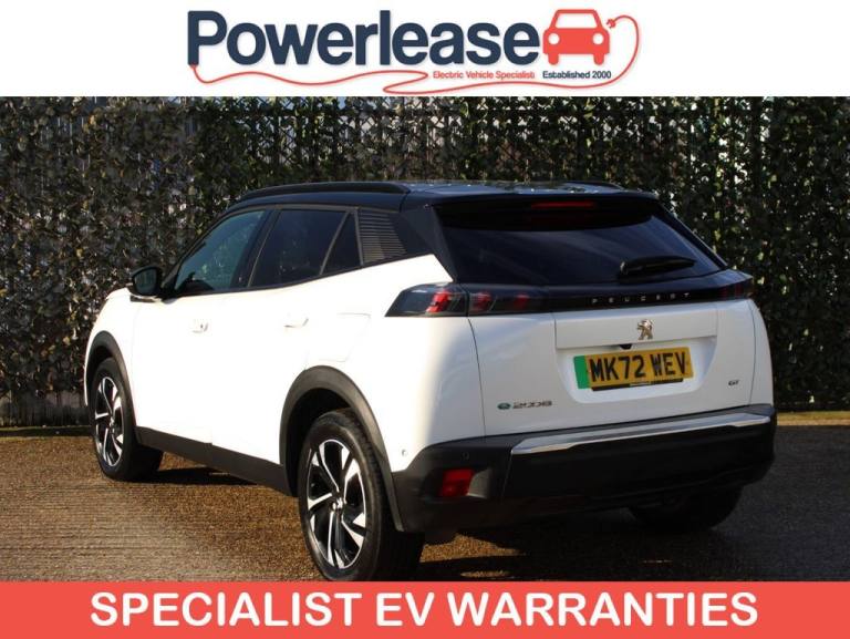 **95% BATTERY HEALTH** This 2022 Peugeot E-2008 GT is a superb example, having had only one owner since new. As a fully electric vehicle, it offers a compelling blend of modern technology and sustainable driving. With a 50 kWh battery, it boasts a maximum range of 214 miles when new, making it ideal for both daily commutes and longer journeys. Charging is convenient, with a full charge at home using a 7kW charger taking approximately 7 hours and 30 minutes, while rapid public charging can replenish the battery from empty to 80% in just 30 minutes. The GT trim level comes equipped with a host of impressive features designed to enhance your driving experience. The PEUGEOT 3D i-Cockpit with its configurable 3D Head-Up Instrument Panel provides a futuristic and intuitive display. Stay connected and entertained with Mirror Screen, which seamlessly integrates Apple CarPlay, Android Auto, and MirrorLink. Parking is made easier with front parking sensors and assistance. Comfort is assured with automatic air conditioning featuring pollen and carbon active filters, and the Full LED Headlights with Smartbeam Assist ensure excellent visibility at night. BATTERY HEALTH CHECK AVAILABLE ON REQUEST SPECIALIST EV EXTENDED WARRANTIES ALL VEHICLES FULLY INSPECTED ALL VEHICLES SERVICED & MOTED HPI CHECKED AND CERTIFIED FINANCE AVAILABLE PART EXCHANGE AVAILABLE CLICK AND COLLECT AVAILABLE HOME DELIVERY AVAILABLE BUY ONLINE VIA OUR WEBSITE WWW.POWERLEASE.CO.UK IN BUSINESS FOR OVER 20 YEARS EST 2000 .1-3 - 2-3 Folding Rear Seat, 12V Power Socket, 17in Alloy Wheels - Salamanca - Diamond Cut, 6-Speaker Radio - MP3 Compatible, 7KW Monophase On Board Charger, 8 Colour Personalisable Ambient Lighting, ABS with Electronic Brake Force Distributor EBD and Emergency Brake Assist EBA, Acoustic Windscreen, Active Lane Keeping Assistance - LKA and Road Edge Detection, Active Safety Brake - Night Function - Cyclists - Pedestrians, Airbags - Adaptive Driver and Front Passenger, Alarm with Anti-Lift Sensor, Aluminium Pedals, Automatic Air Conditioning with Pollen Filter and Carbon Active Filter, Automatic Door Locking When Moving Off, Automatic Hazard Light Activation Upon Heavy Brake Application, AVAS - Acoustic Vehicle Alerting System, Bluetooth Telephone Facility, Child Locking Functionality on Rear Doors, DAB Digital Radio, Dark Tinted Rear Side and Tailgate Windows, Dashboard - Front and Rear Door Panel Finish - Carbon Effect, Deadlocking, Diamond Black Roof, Distance Alert System, Door Mirror Covers - Black Diamond, Driver and Front Passenger Seat Mechanical Height Adjustment, Driver and Front Passenger Side Airbags, Driver Attention Alert Level 3, Driver Selector, Electric - Heated and Power Folding Door Mirrors, Electric Parking Brake, Electric Power Steering with Reach and Rake Adjustable Steering Column, Electric Windows - Front and Rear with One Touch and Pinch Protection, Electronic Code Immobiliser, ESP - Electronic Stability Program - with Hill Assist, Exterior Door Handles - Body-Colour, Exterior Temperature Indicator with Ice Warning, Frameless Electrochrome Rear View Mirror, Front and Rear 3 Point Retractable Seatbelts - With Force Limiter, Front and Rear Carpet Mats in Black with Specific Detailing, Front and Rear Curtain Airbags, Front Central Armrest with Storage Compartment, Front Optimised Safety Headrests and Rear Retractable Headrests - x3 - Height-Adjustable, Front USB Socket x2 including x1 USB-C, Front Windscreen - Tinted, Front Wing Trim - Black with Gloss Black Detail and E Monogram, Full LED Headlights with Smartbeam Assist, Gloss Black B Pillar, Gloss Black Rear Cluster Connecting Strip, Gloss Black Window Surround, GT Model Designation Badging on Tailgate, Headlights Left On Audible Warning, Heated Front Driver and Passenger Seats, High Centre Console, ISOFIX Child Seat Fittings - Passenger Seat, ISOFIX Child Seat Fittings - x2 - Second Row, LED Daytime Running Lights - 3-Claw Headlight with Distinctive Tooth Design, LED Front Interior
