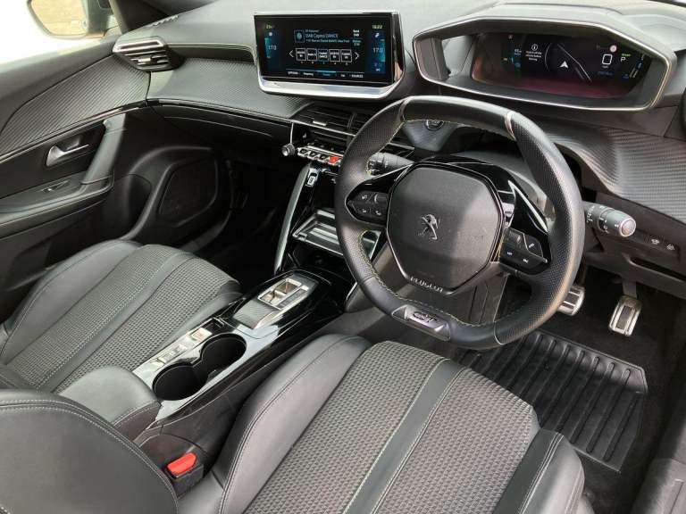 Drive with confidence knowing this 2023 Peugeot E-2008 GT has an MOT valid until June 2026. This electric vehicle boasts a 50 kWh battery, offering a maximum range of 214 miles when new. Enjoy seamless connectivity with the Bluetooth telephone facility, and navigate tight spots with ease thanks to the front and rear parking sensors. The GT trim also features full LED headlights with Smartbeam Assist for enhanced visibility. This Peugeot E-2008 GT provides a convenient charging experience. A full charge at home using a 7kW charger takes approximately 7 hours and 30 minutes, perfect for overnight top ups. For faster charging on the go, you can reach 80% capacity from empty in just 30 minutes at a public charging station. These features demonstrate how this electric Peugeot offers a practical and advanced driving solution.